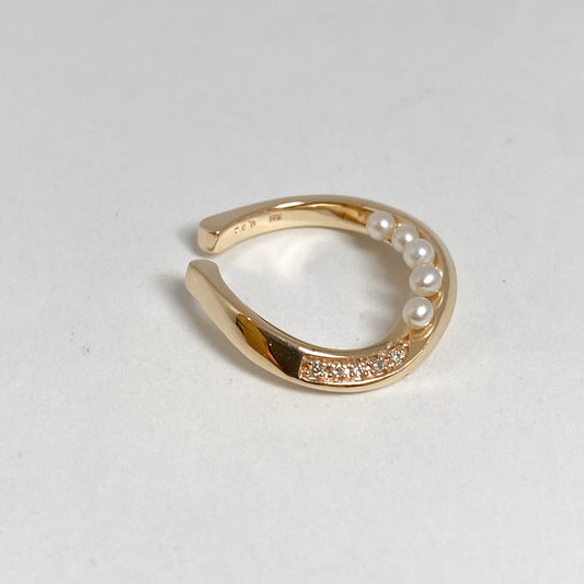 K10イエローゴールド 淡水パール ダイヤモンドイヤカフ