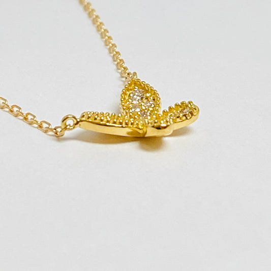 SOLD OUTK18イエローゴールド ダイヤモンド0.1ctバタフライネックレス