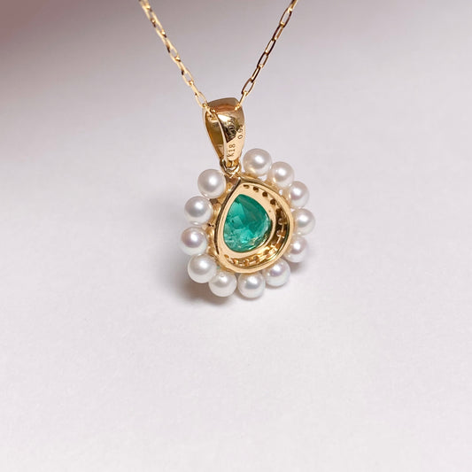 K18イエローゴールド エメラルド ダイヤモンド・シードパールネックレス