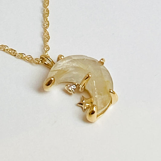 K10イエローゴールド ルチルクォーツ・ダイヤモンド0.01ctネックレス