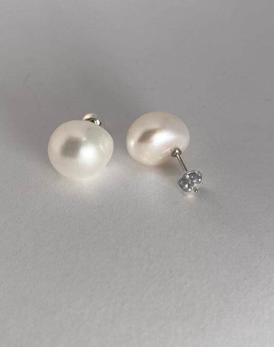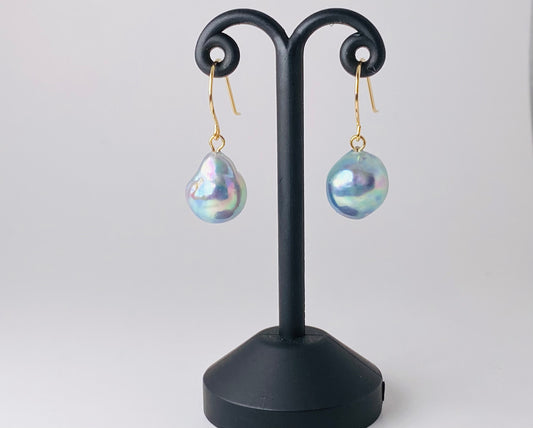 SOLD OUTK10イエローゴールド ナチュラルグレー あこや真珠バロックパールピアス