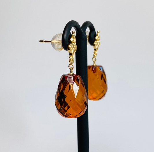 SOLD OUTK18イエローゴールド 琥珀ピアス