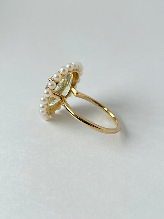 K18 ヘリオドール ダイヤモンド 淡水パールリング