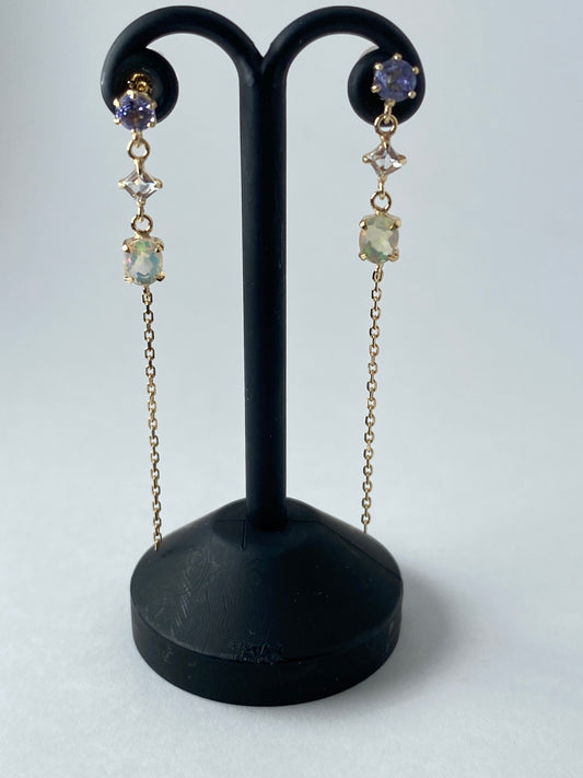 K10イエローゴールド タンザナイト ホワイトトパーズ オパールピアス