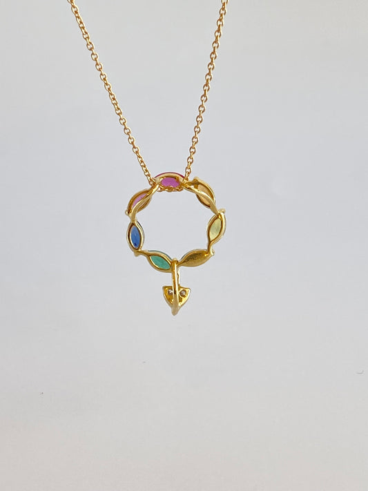 K18イエローゴールド ルビー・エメラルド・サファイア・ダイヤモンドネックレス
