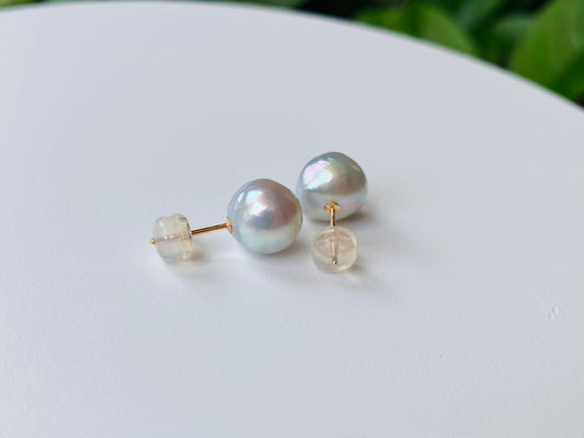 K14ホワイトゴールド 南洋黒蝶真珠ピアス