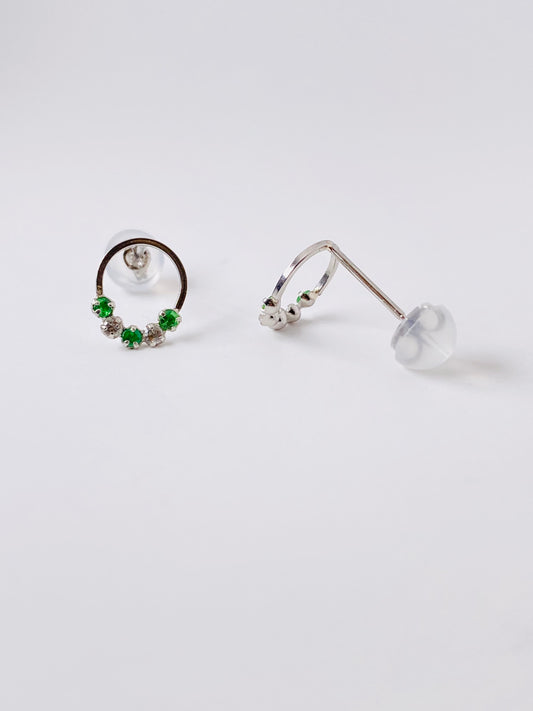 Ptグリーンガーネット・ホワイトトパーズピアス