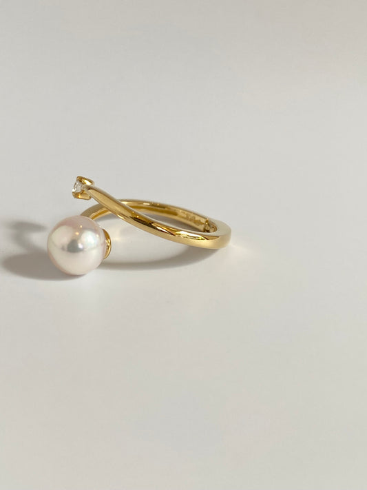 SOLD OUTK18イエローゴールド あこや真珠 ダイヤモンド0.1ctオープンリング
