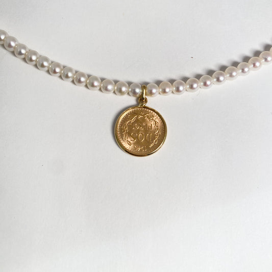 SOLD OUT1945年 メキシコ2ペソ金貨×淡水パールネックレス(K10PG)