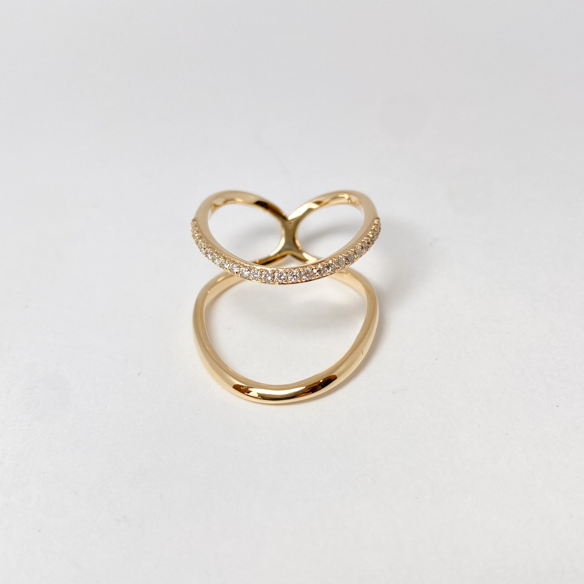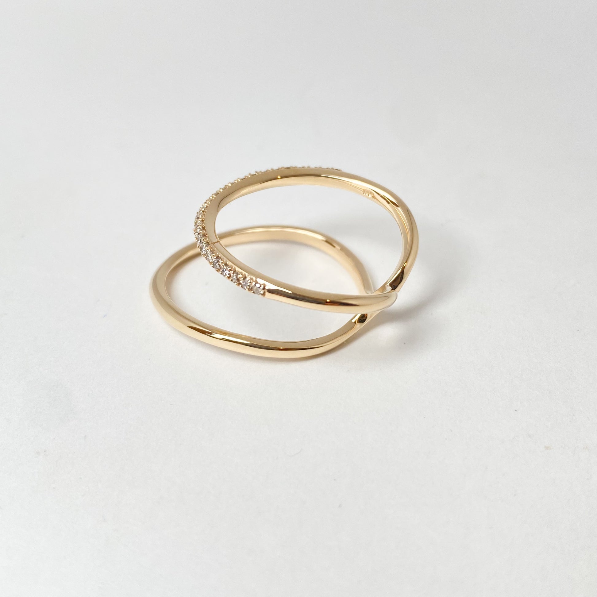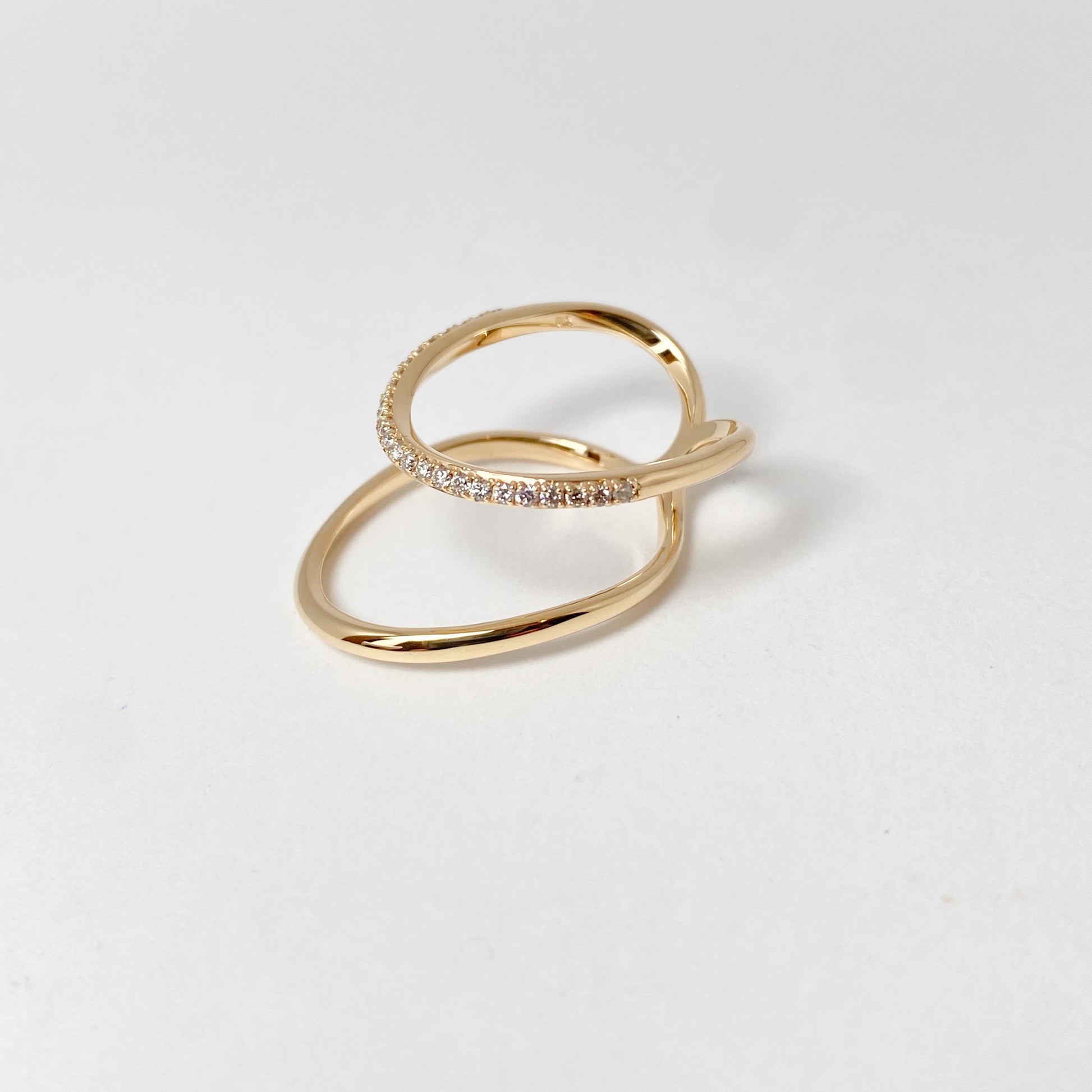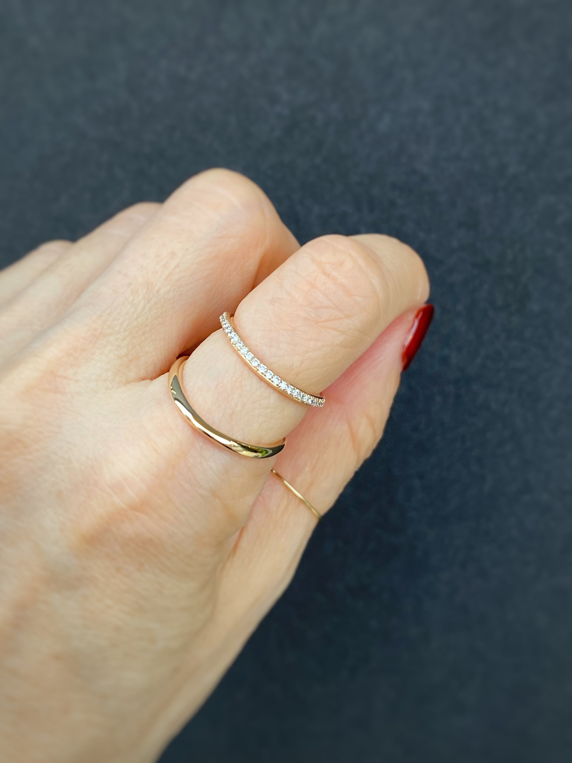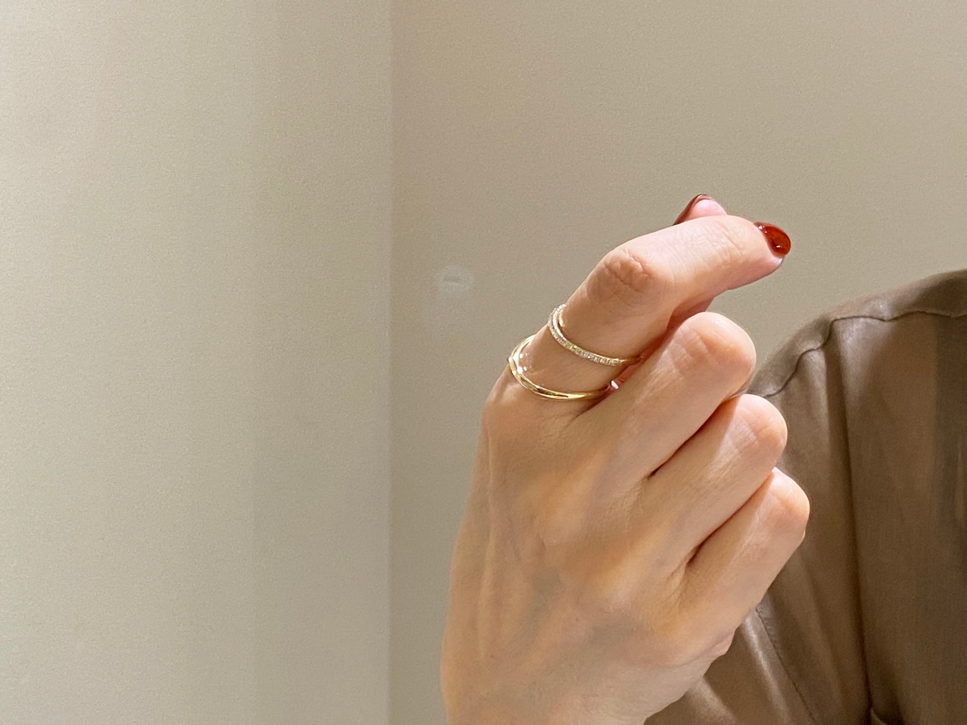 一本で存在感を楽しむのはもちろん、他のリングと重ねてコーディネートするのもおすすめです。