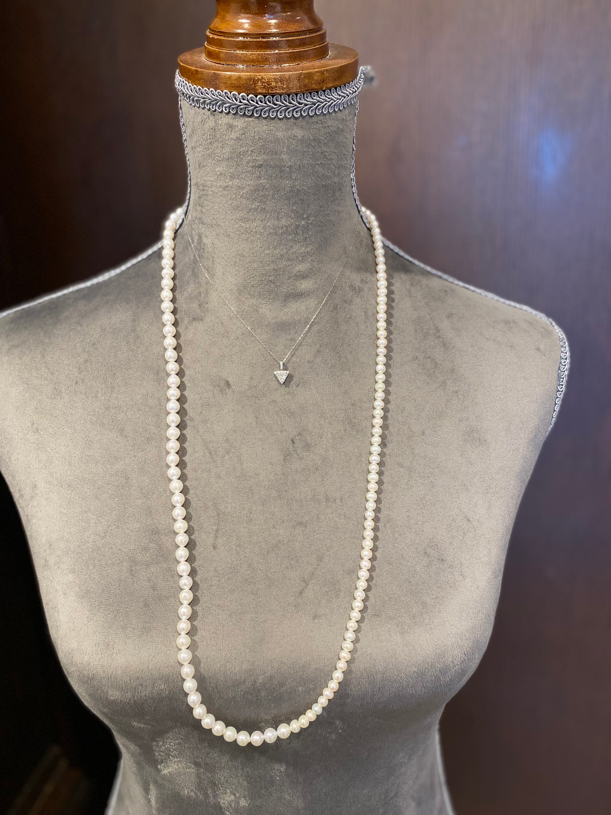 K18ホワイトゴールドの清らかな光がダイヤモンドの透明感をさらに際立たせ、日常の装いにも特別な日にも美しく寄り添うネックレスです。