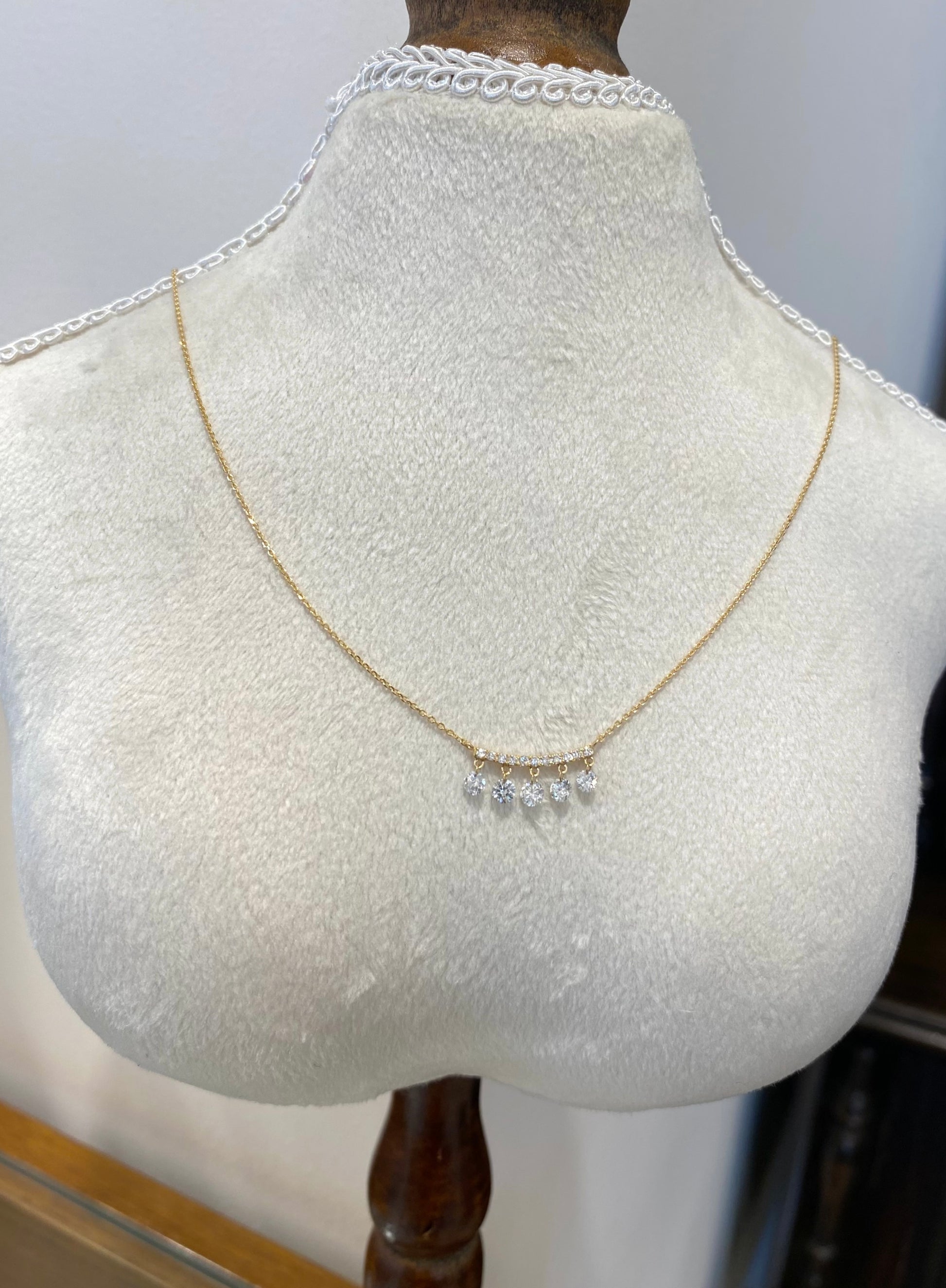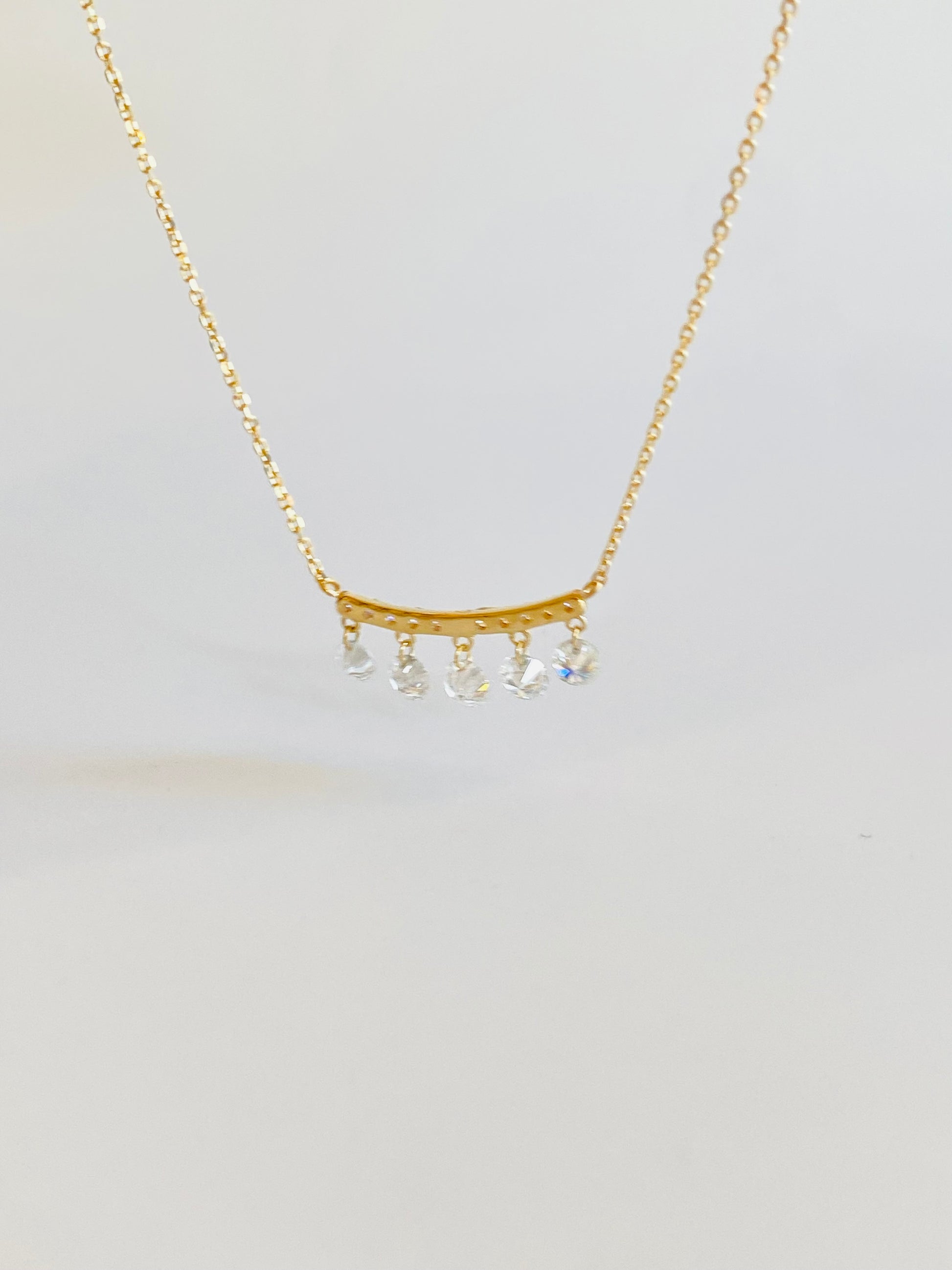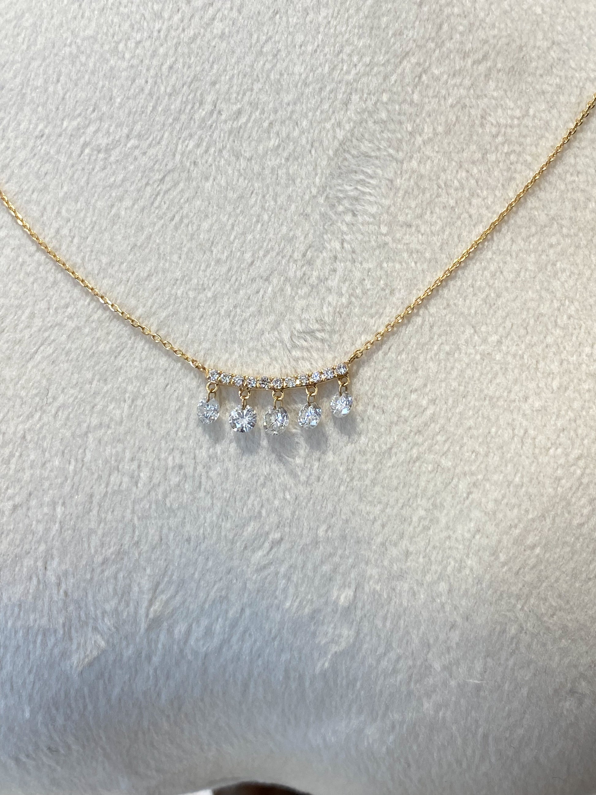 K18イエローゴールドに、レーザーホールダイヤモンドをセッティングした小ぶりでも華やかに煌めくネックレスです。