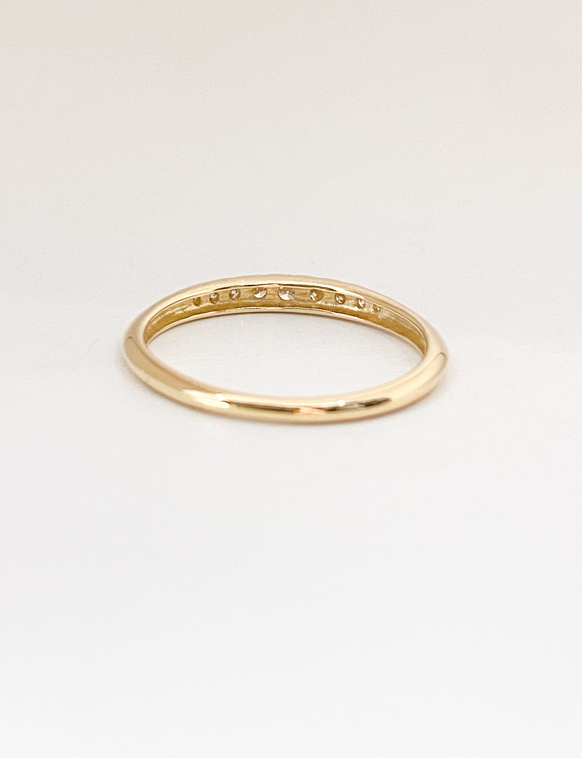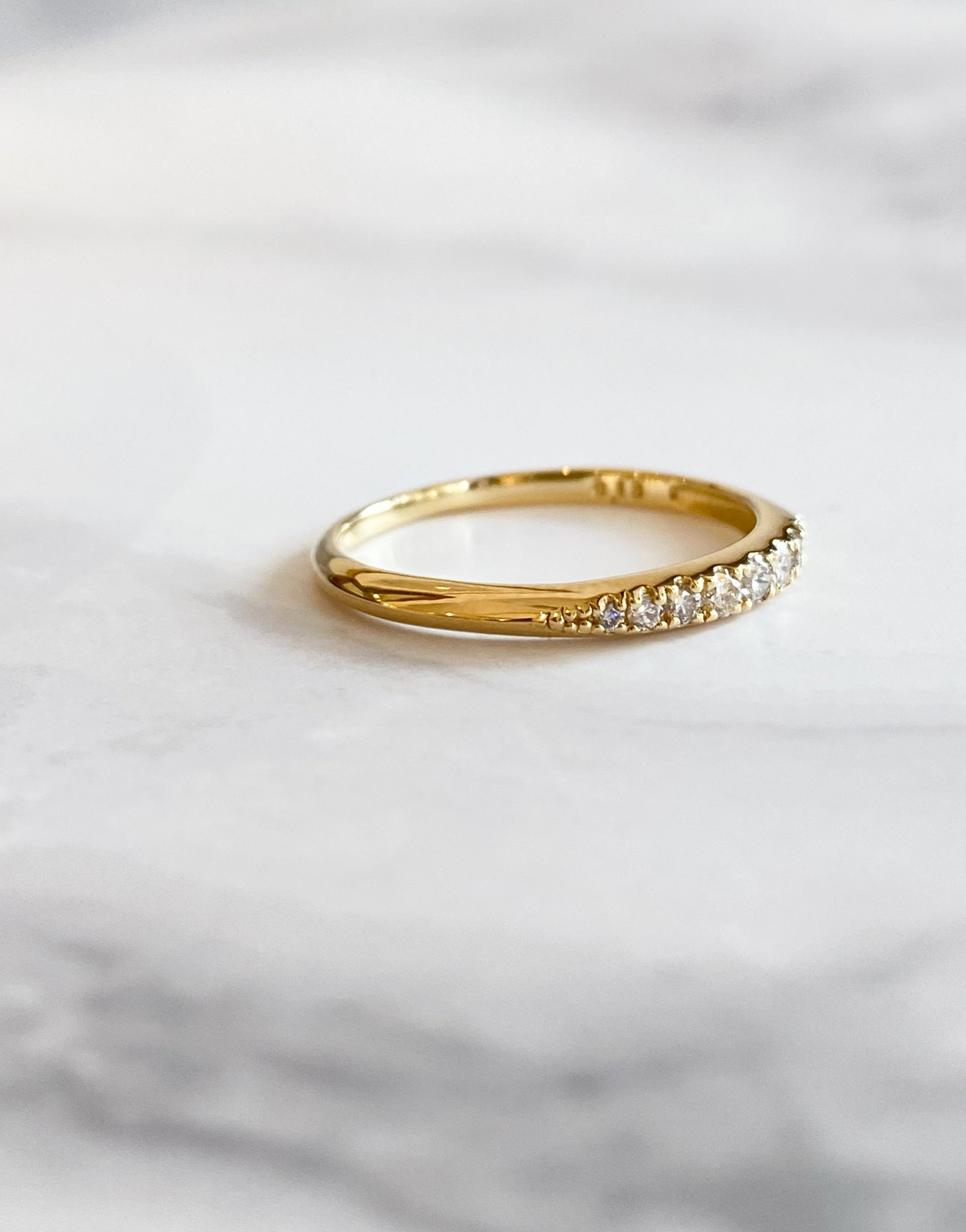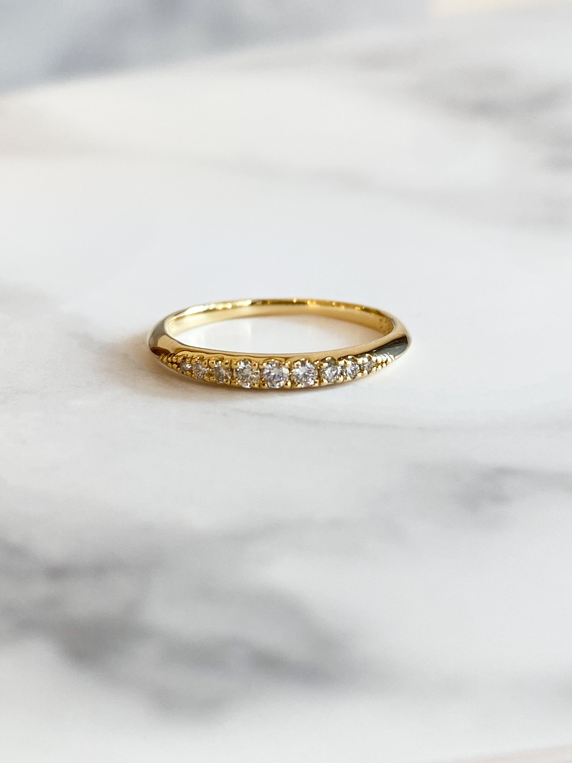 合計0.13ctのダイヤモンドを、センターに向かって大きくなるようグラデーションで並べたリング。