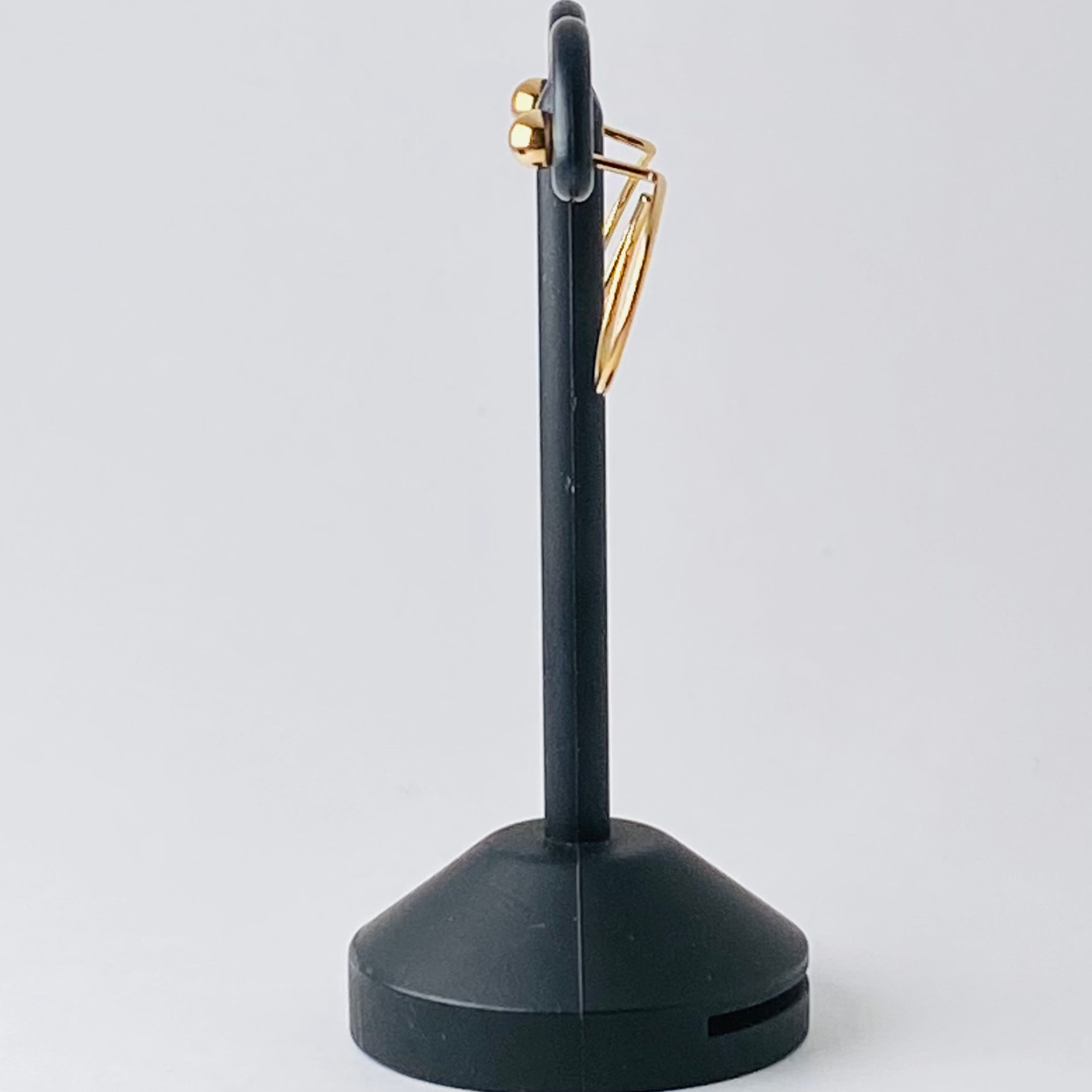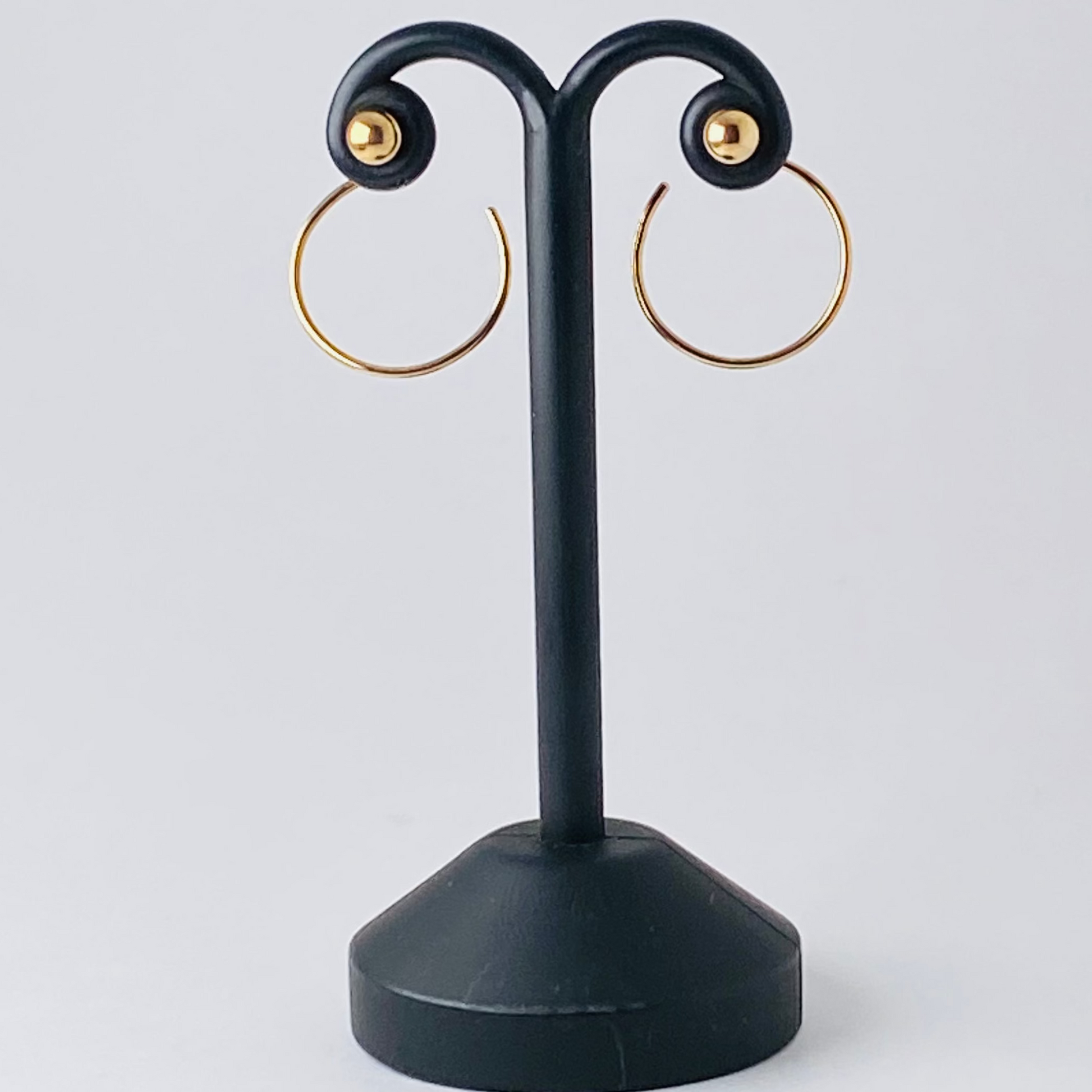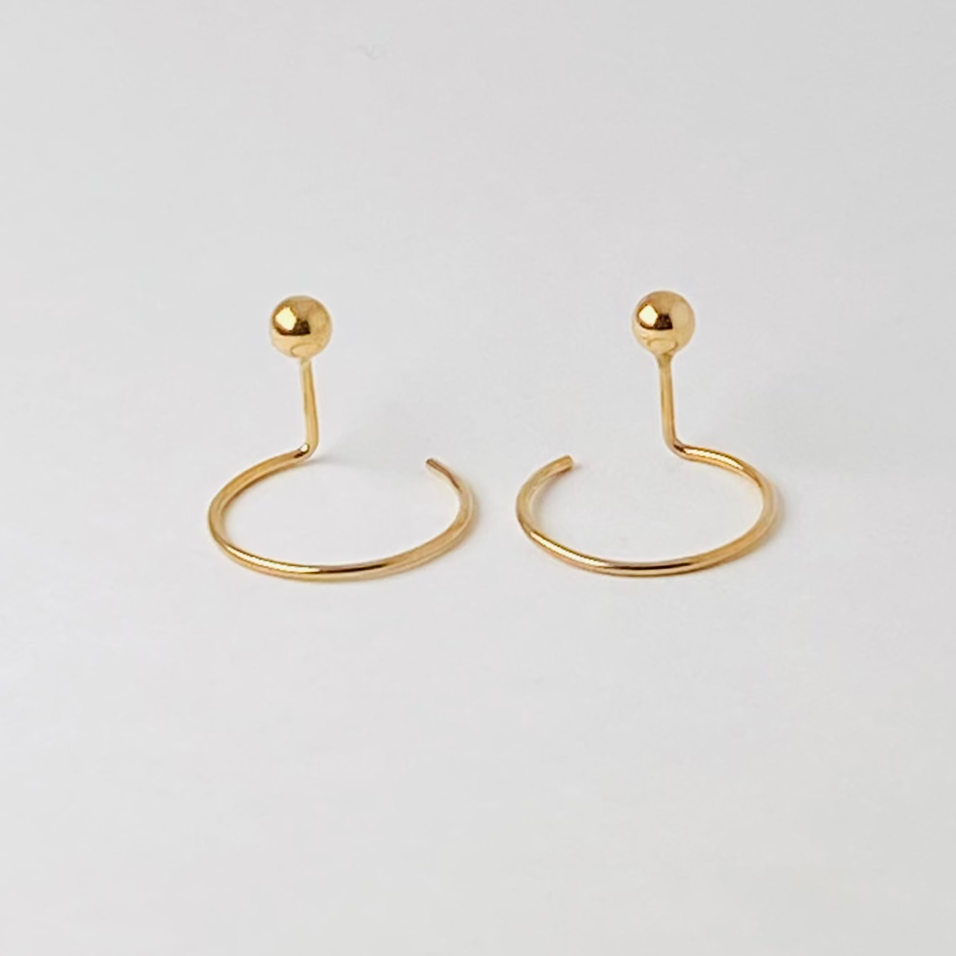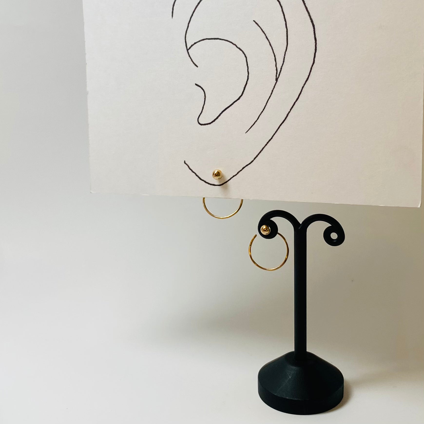 小さなボールと丸いフープが一体になった、立体的なデザインのピアスです。