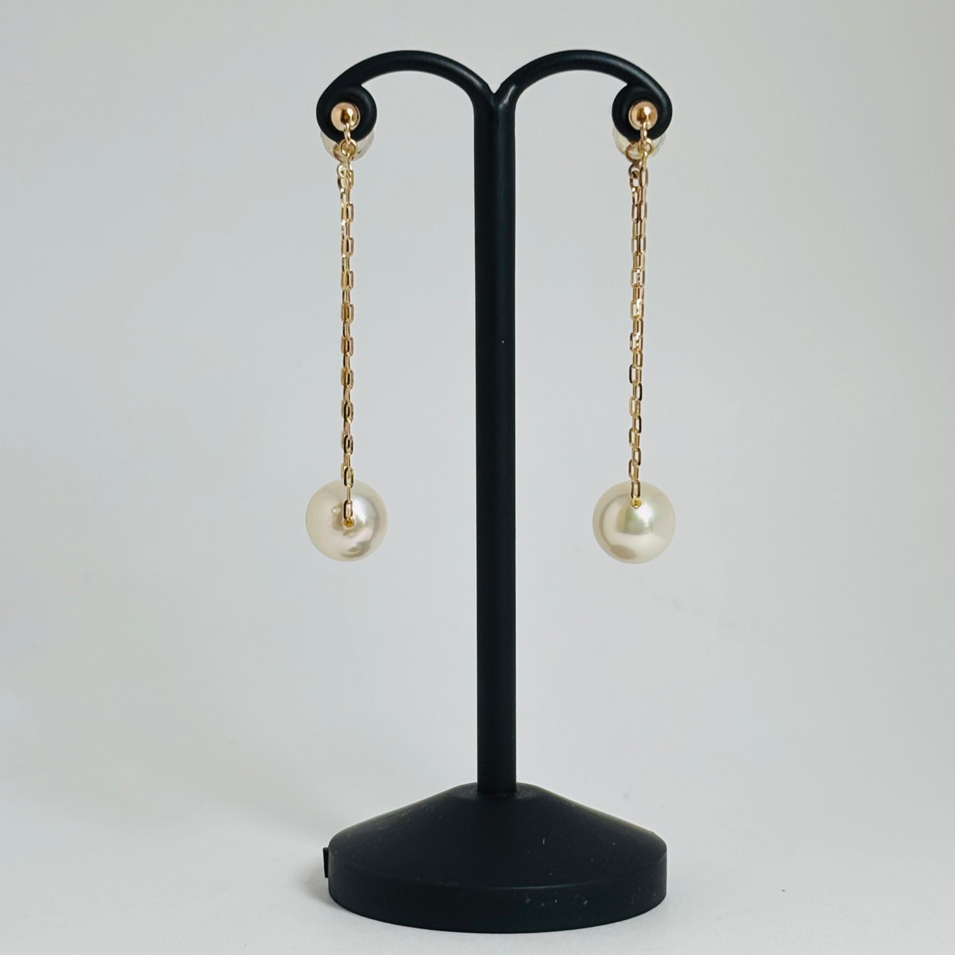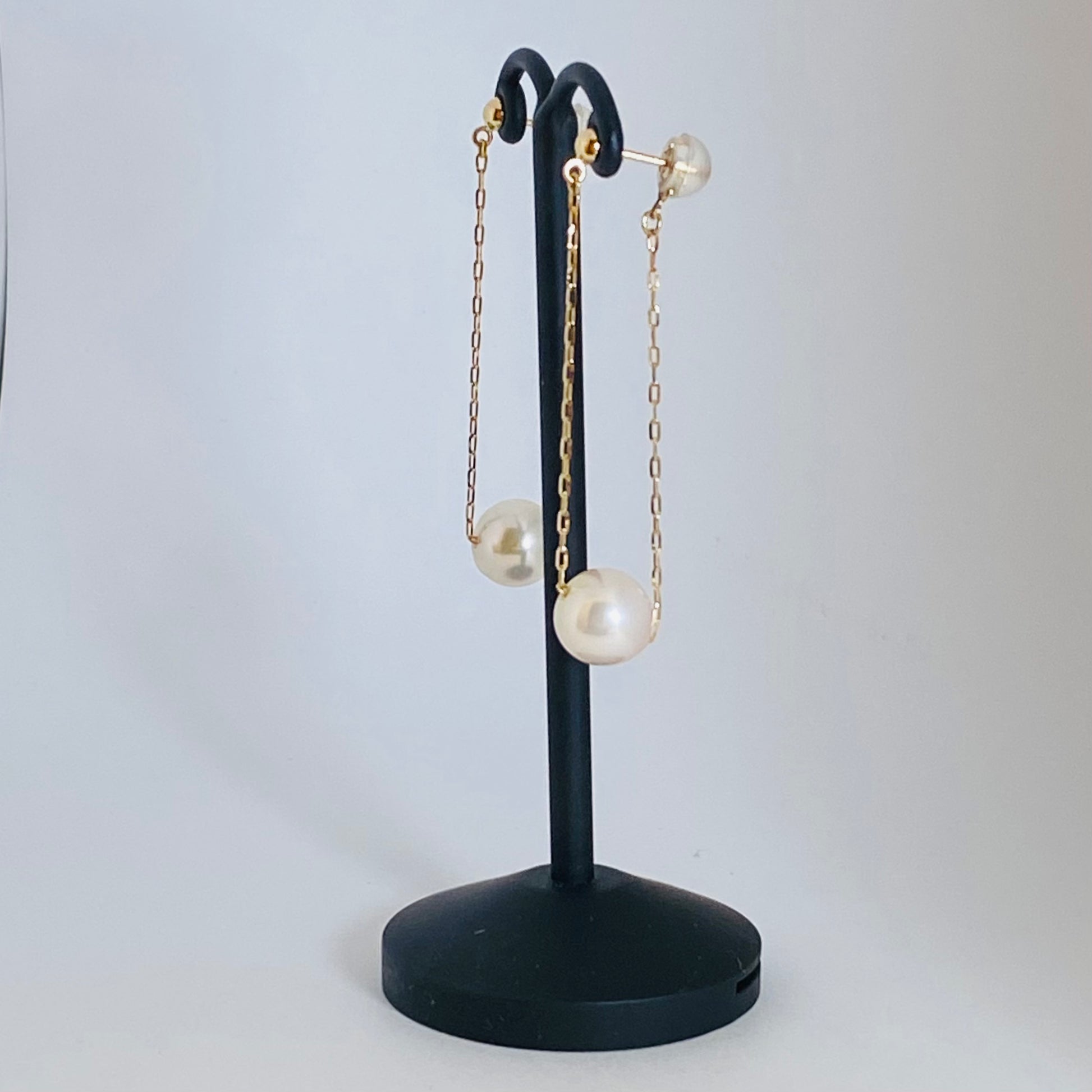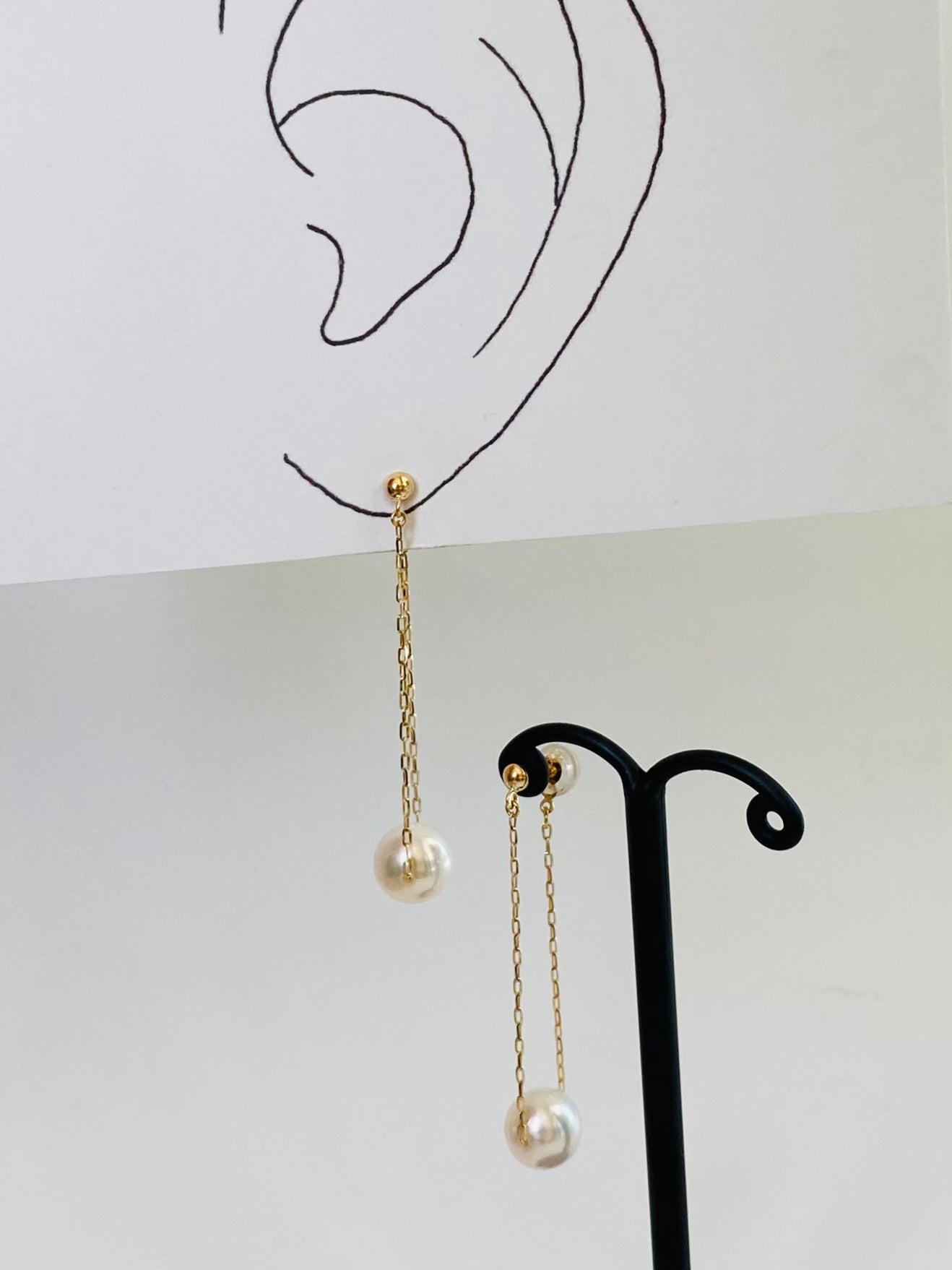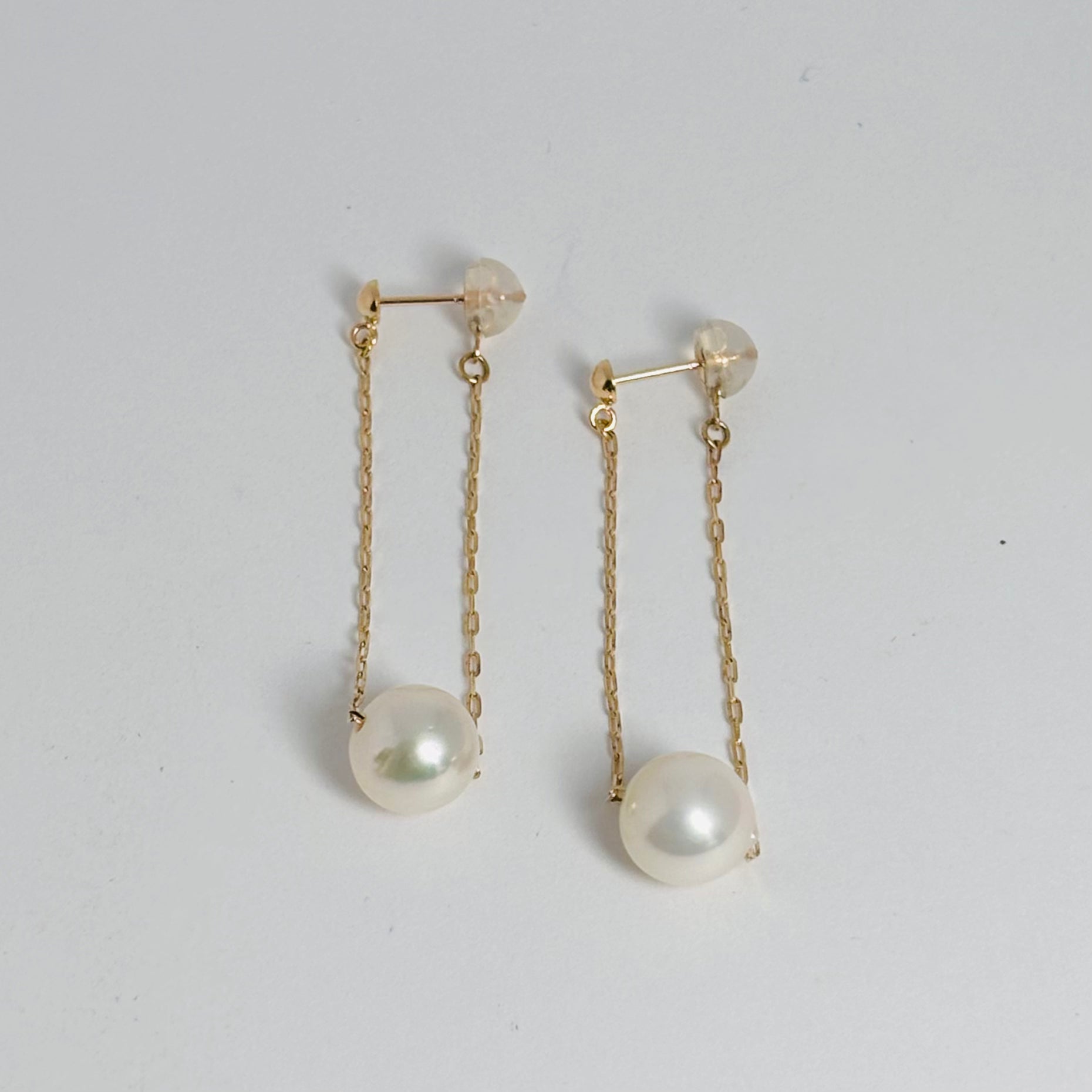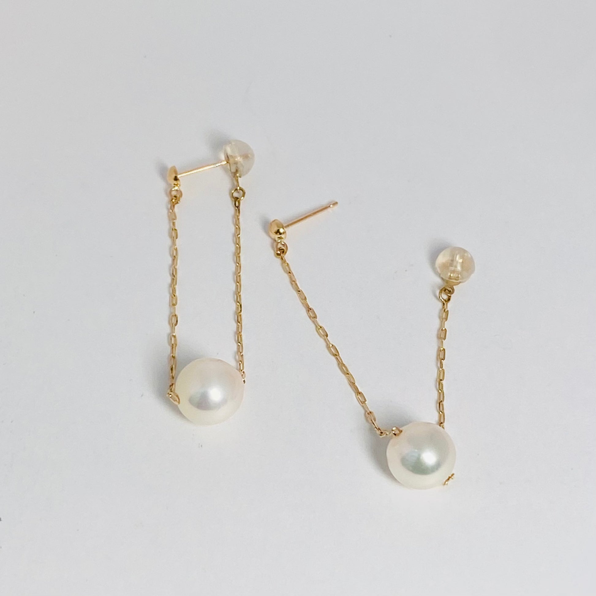 ポスト・チェーン・キャッチが一体になったデザインで動くたびに8㎜のあこや真珠が優しく揺れる上品で華やかなピアスです。