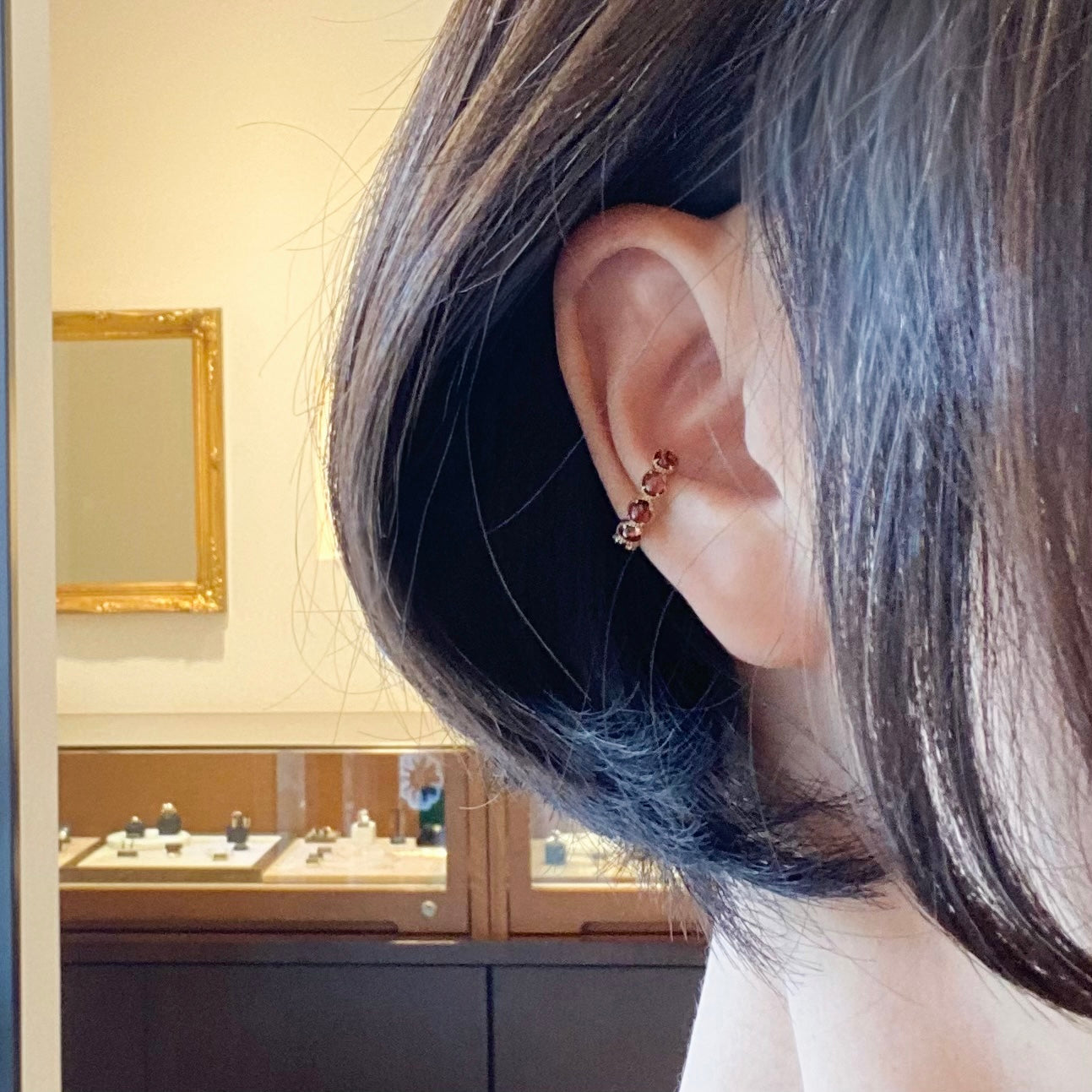 カボションカットのガーネットのイヤーカフです。