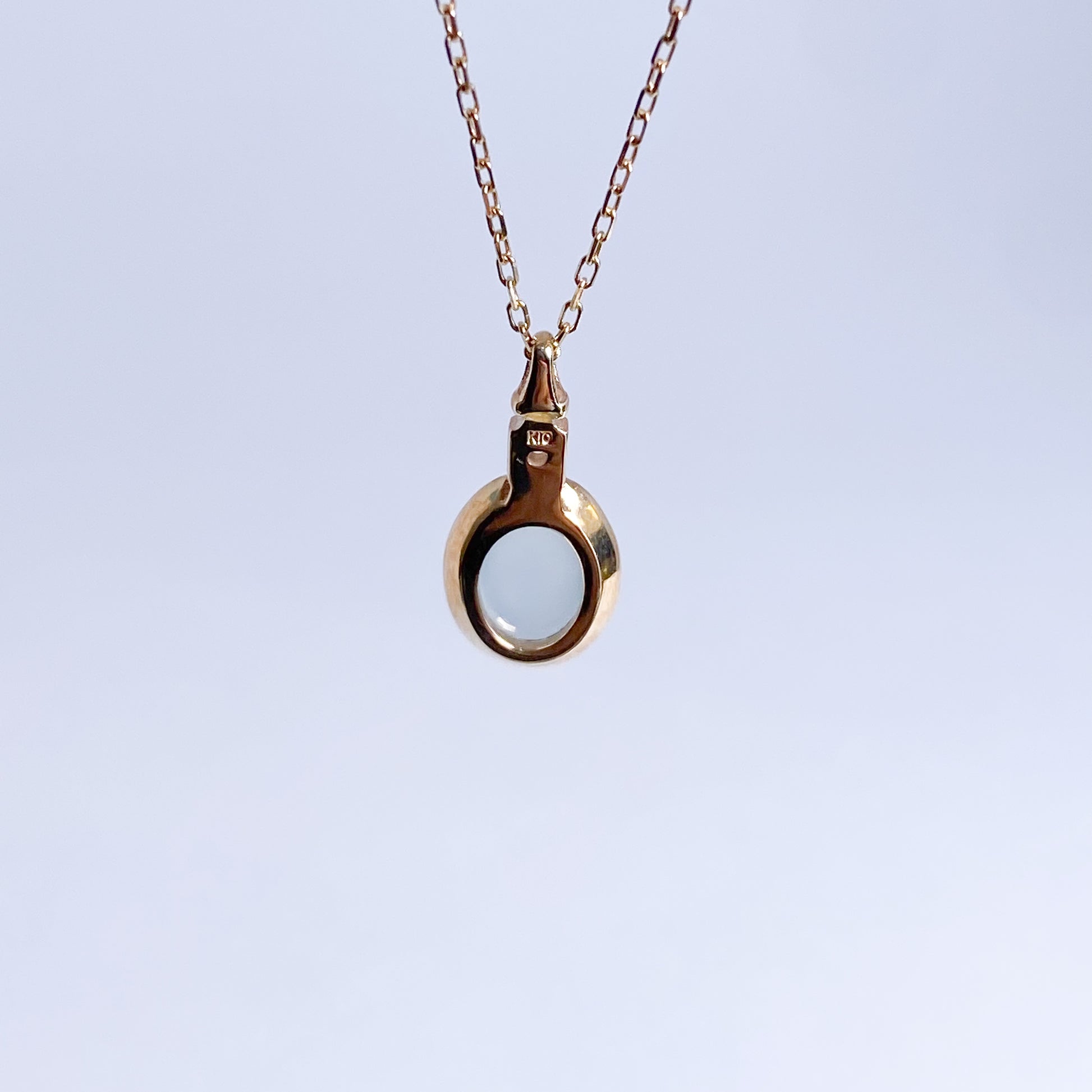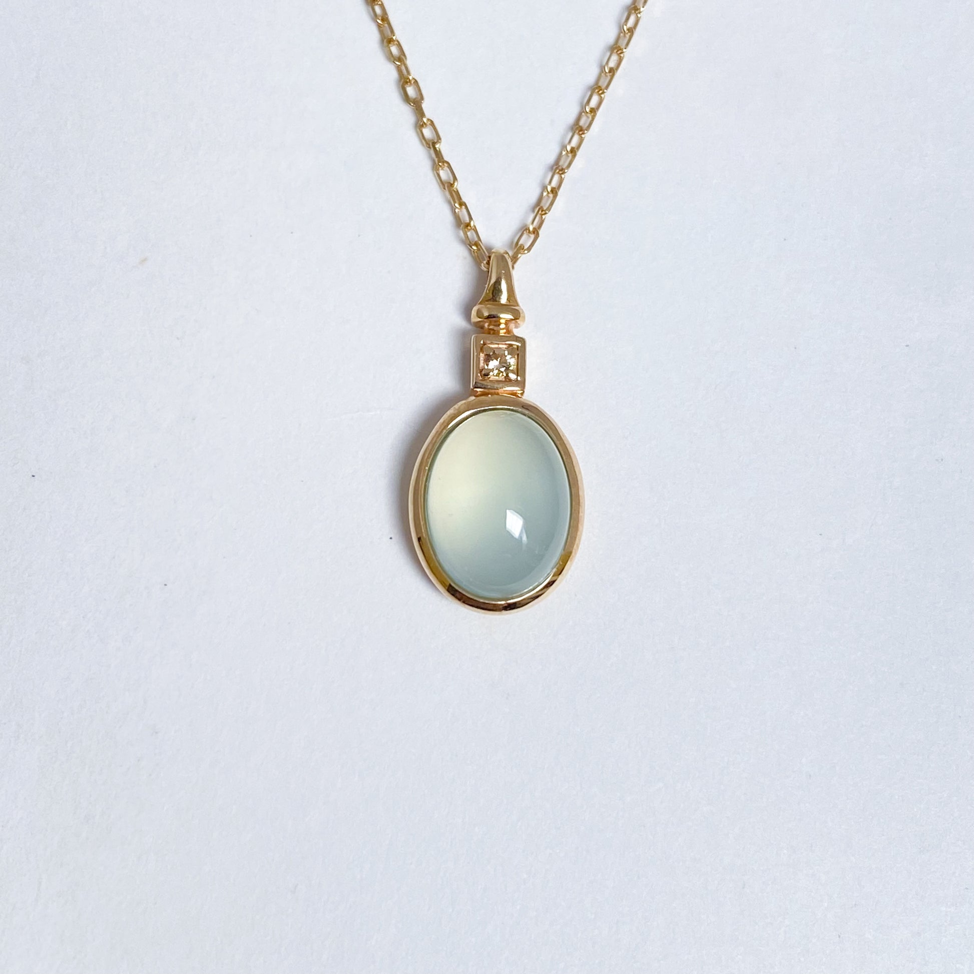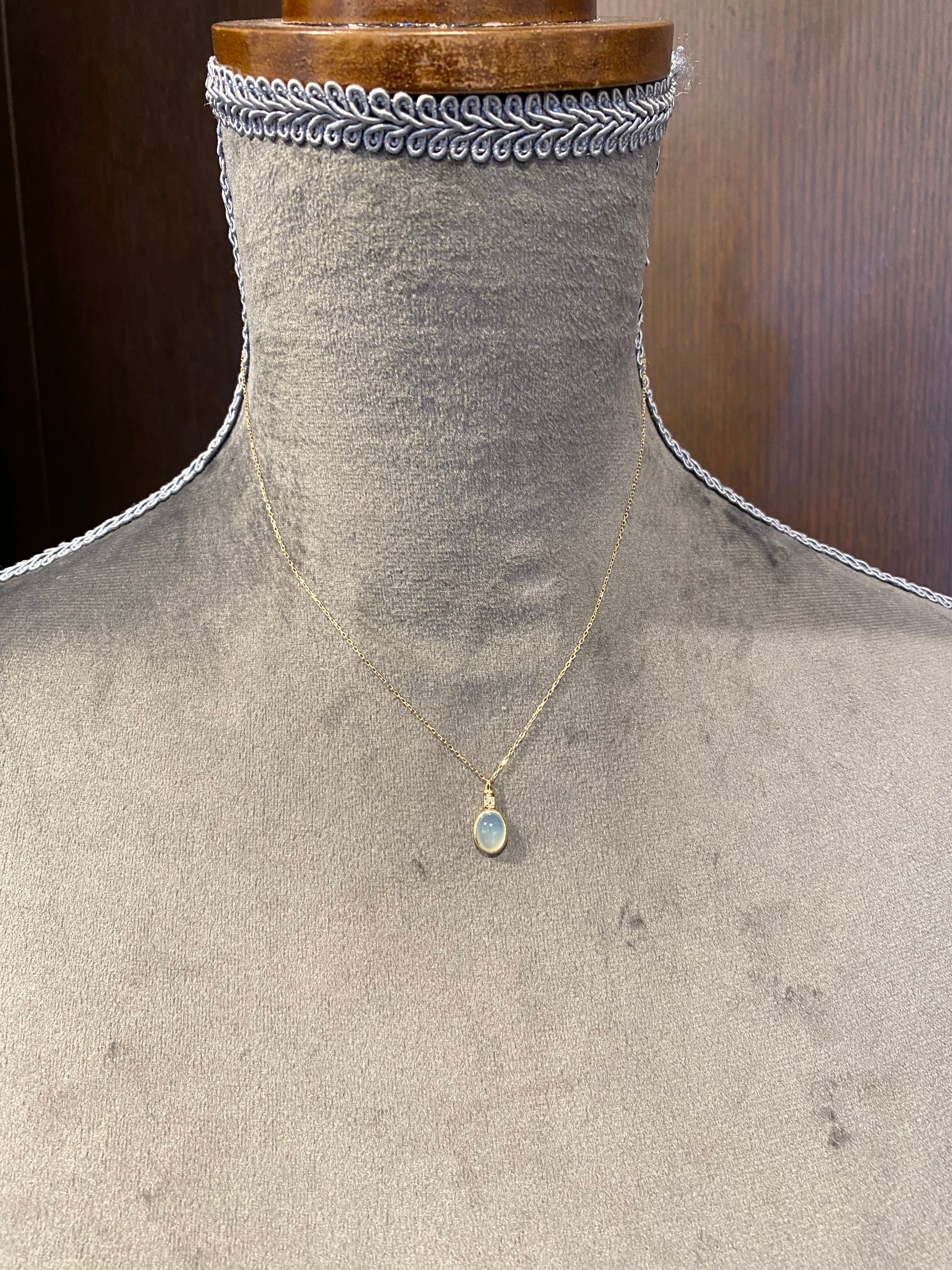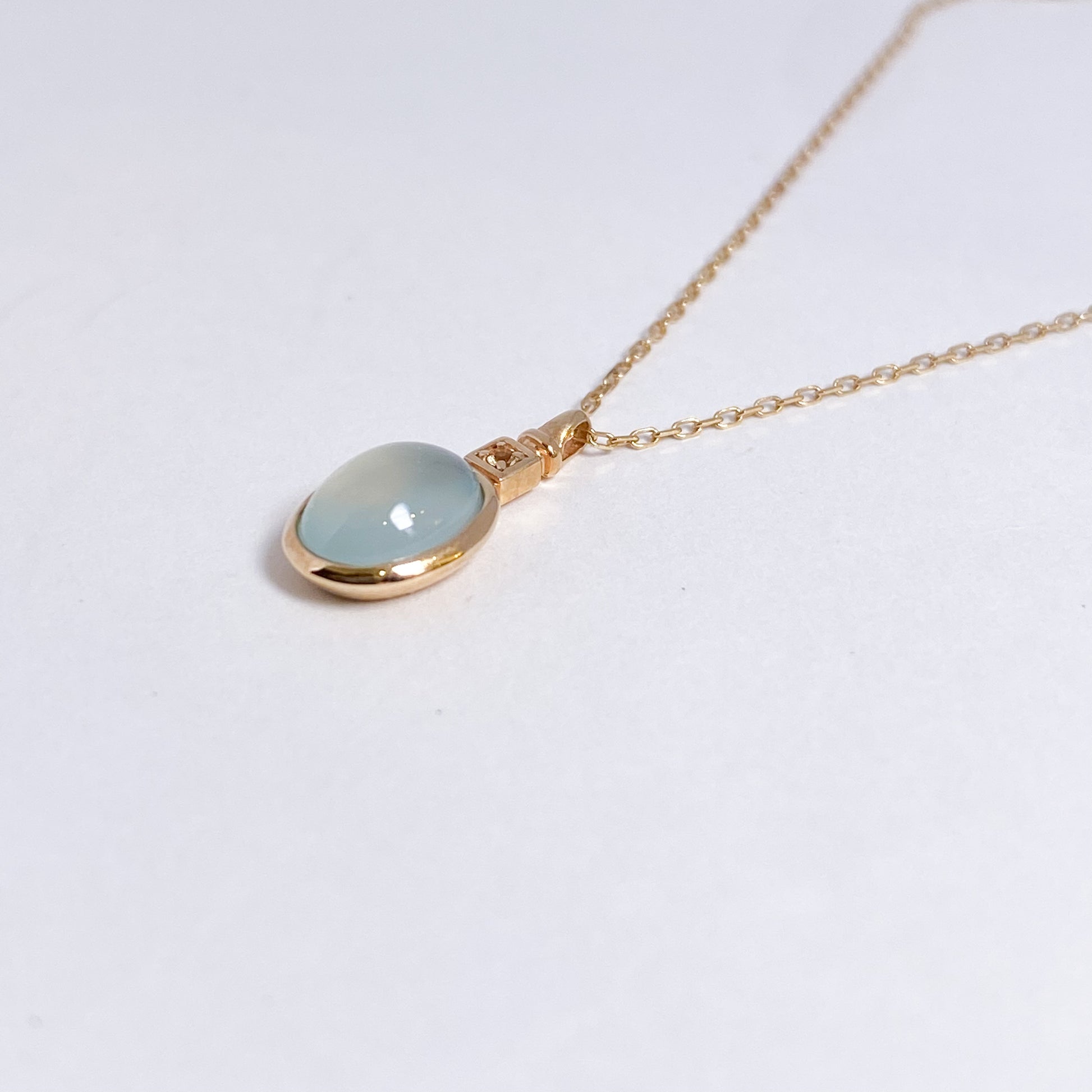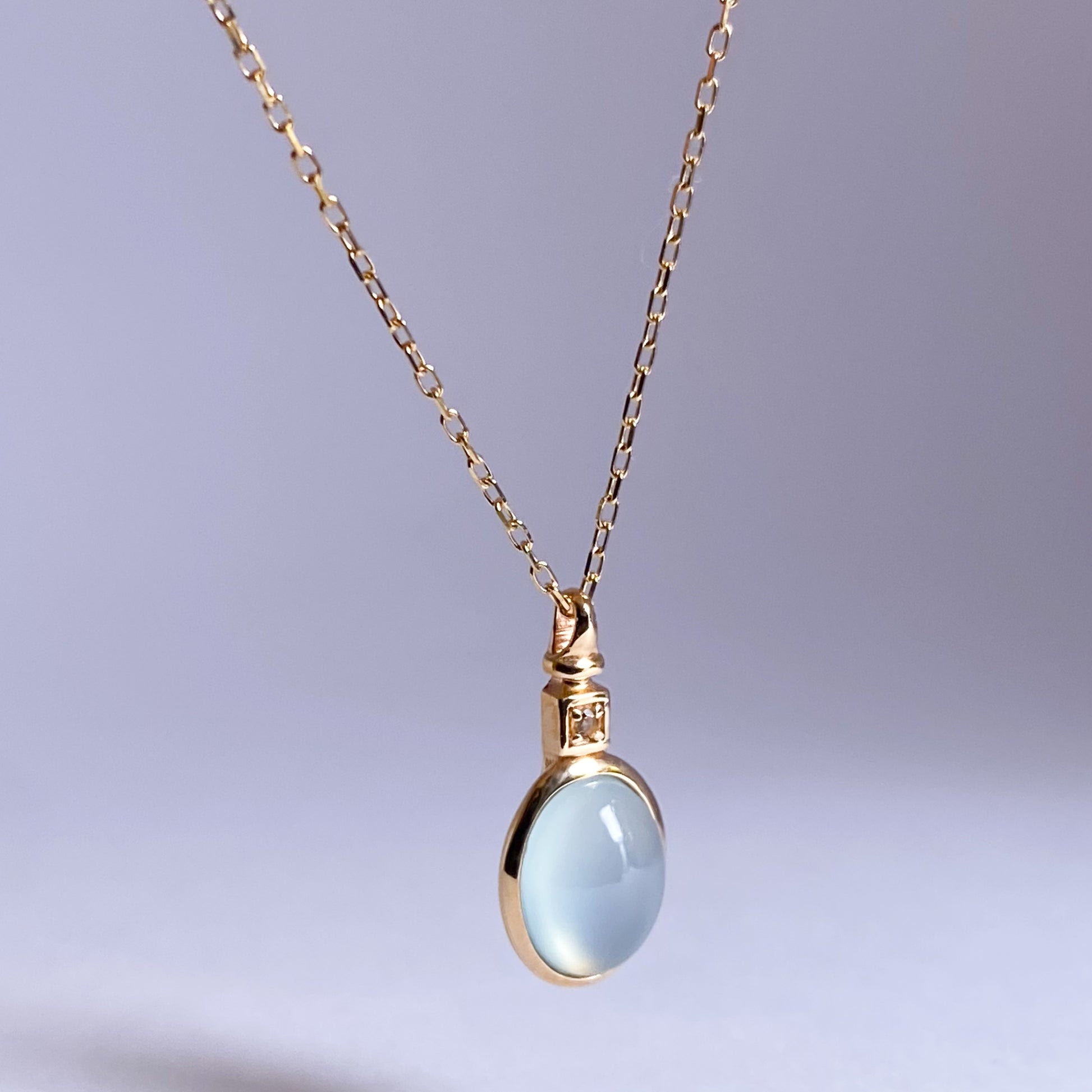 やわらかなミルキーブルーが魅力のカルセドニーを、シンプルに包み込んだネックレスです。