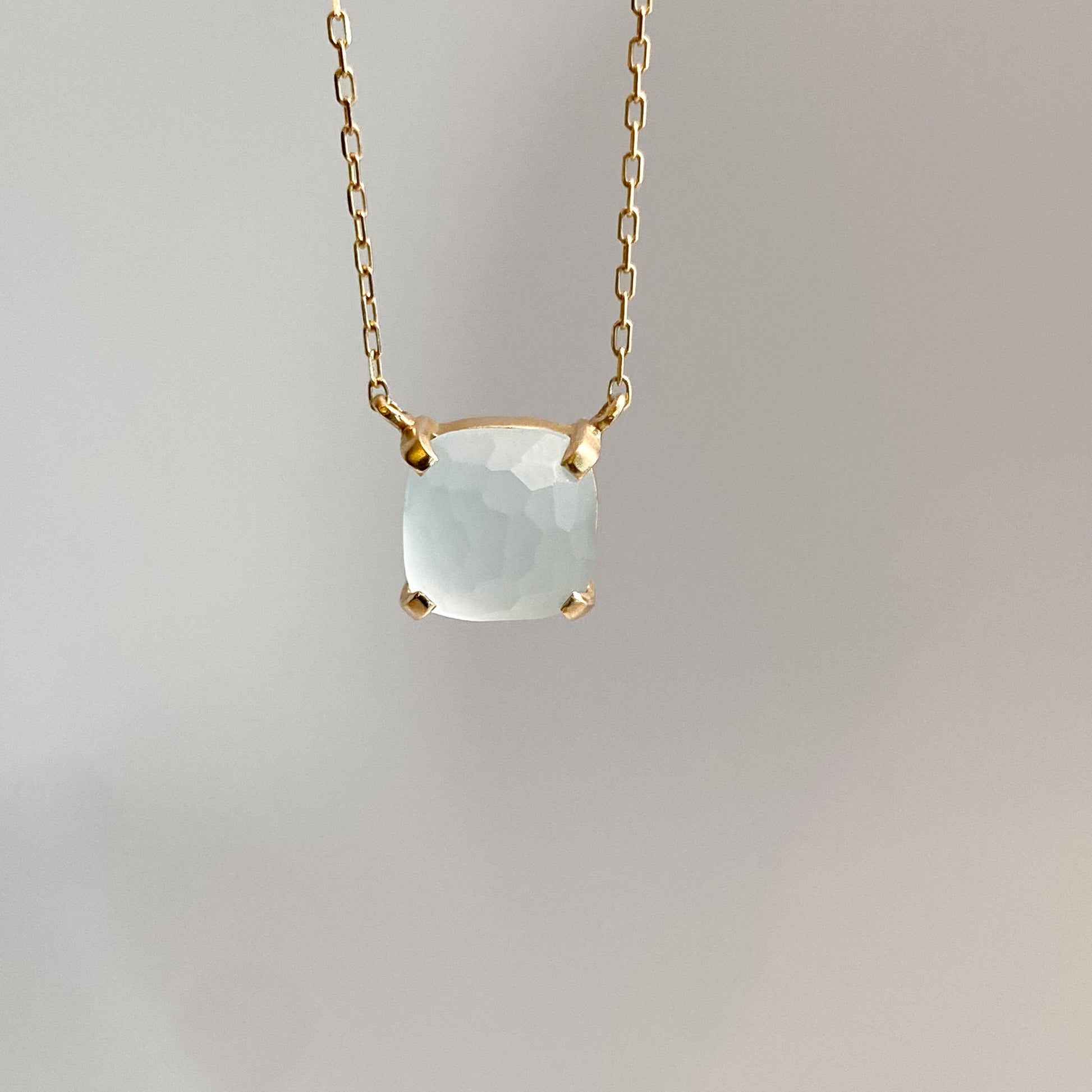 宝石の表面に細かな加工を施し、すりガラスのようなやわらかな質感に仕上げる加工です。光を強く反射せず、ふんわりとした透明感と落ち着いた表情が特徴で、ナチュラルで大人っぽい印象を楽しめます