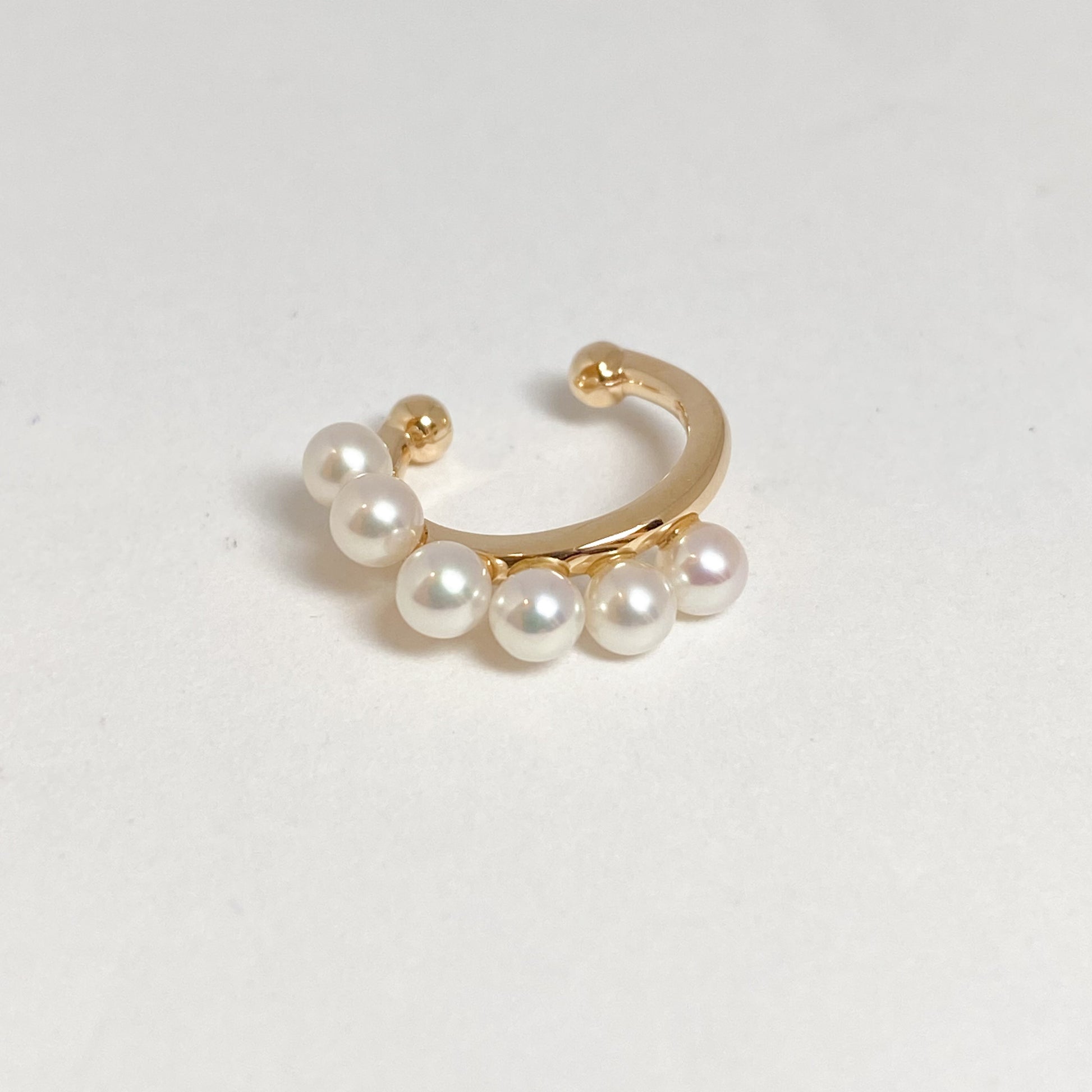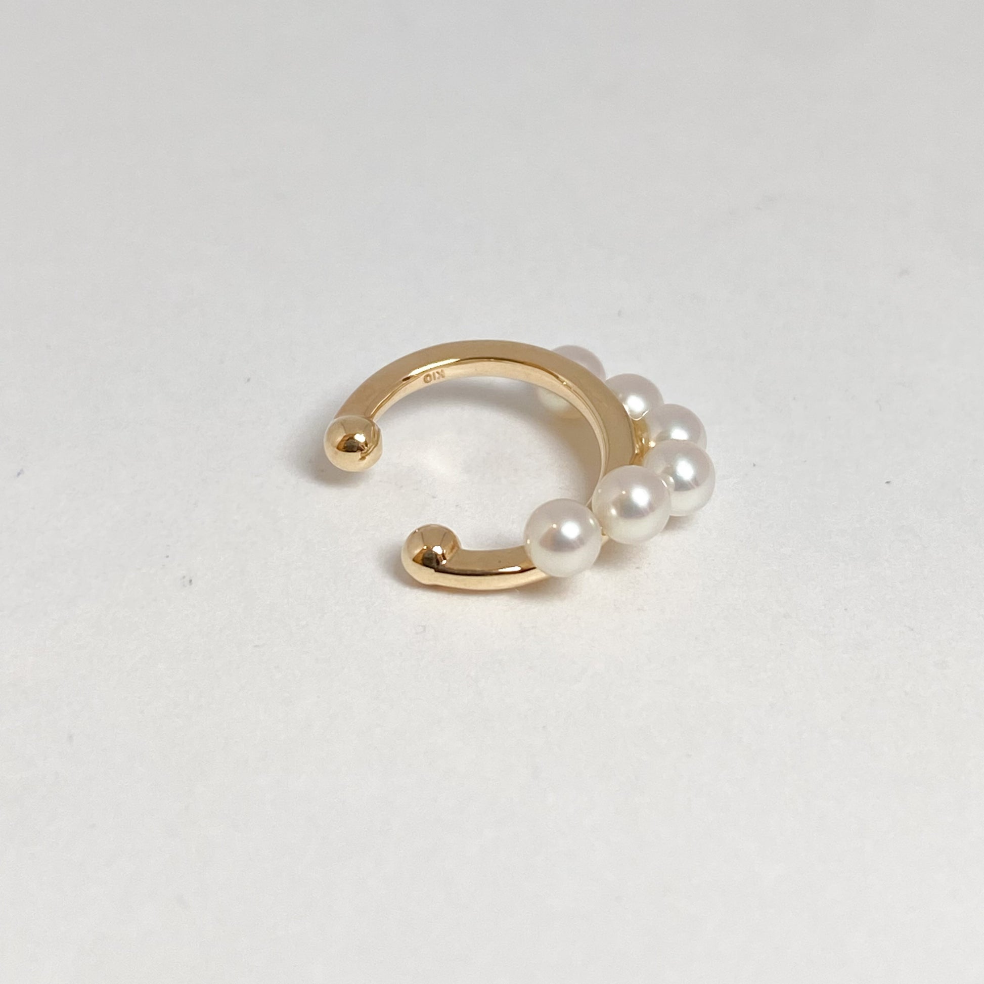 淡水パールを並べた、立体感のあるK10イヤカフです。