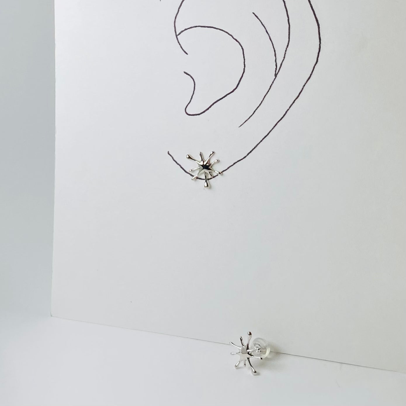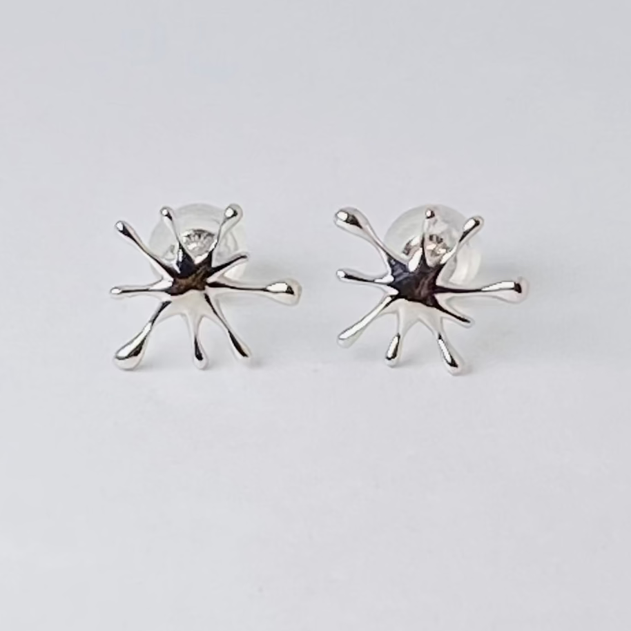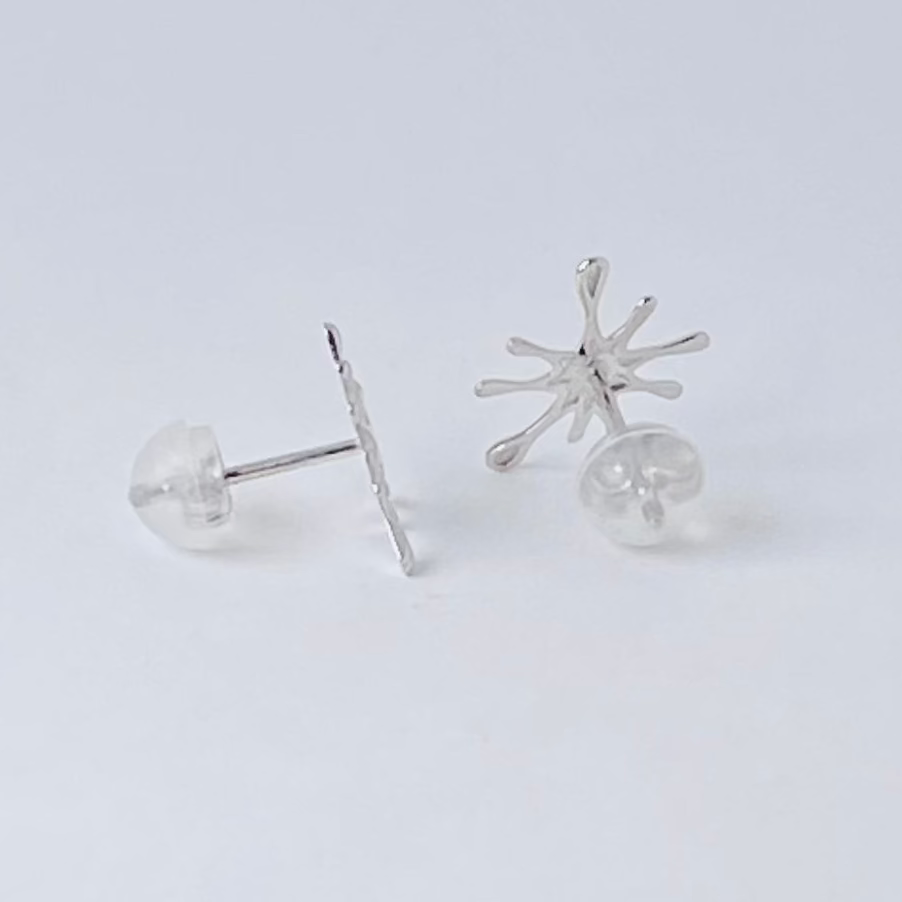 水滴がぱっと広がったような、楽しいデザインのホワイトゴールドピアスです。