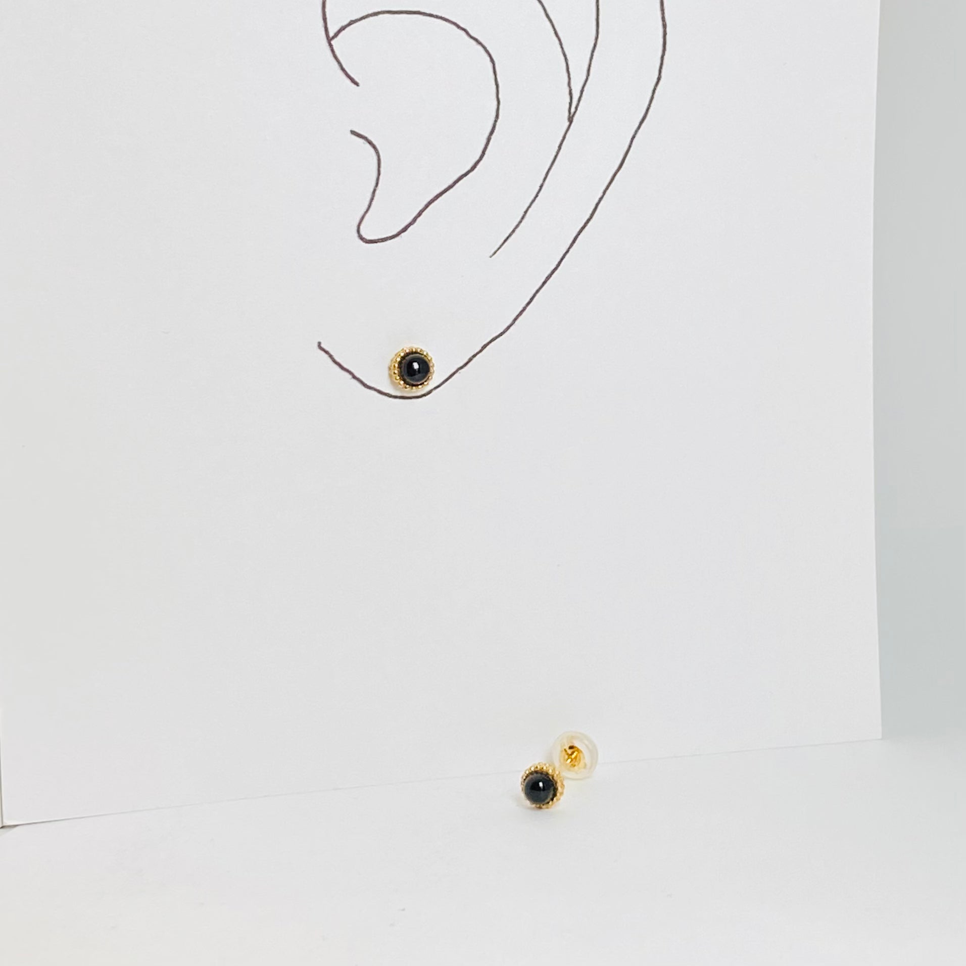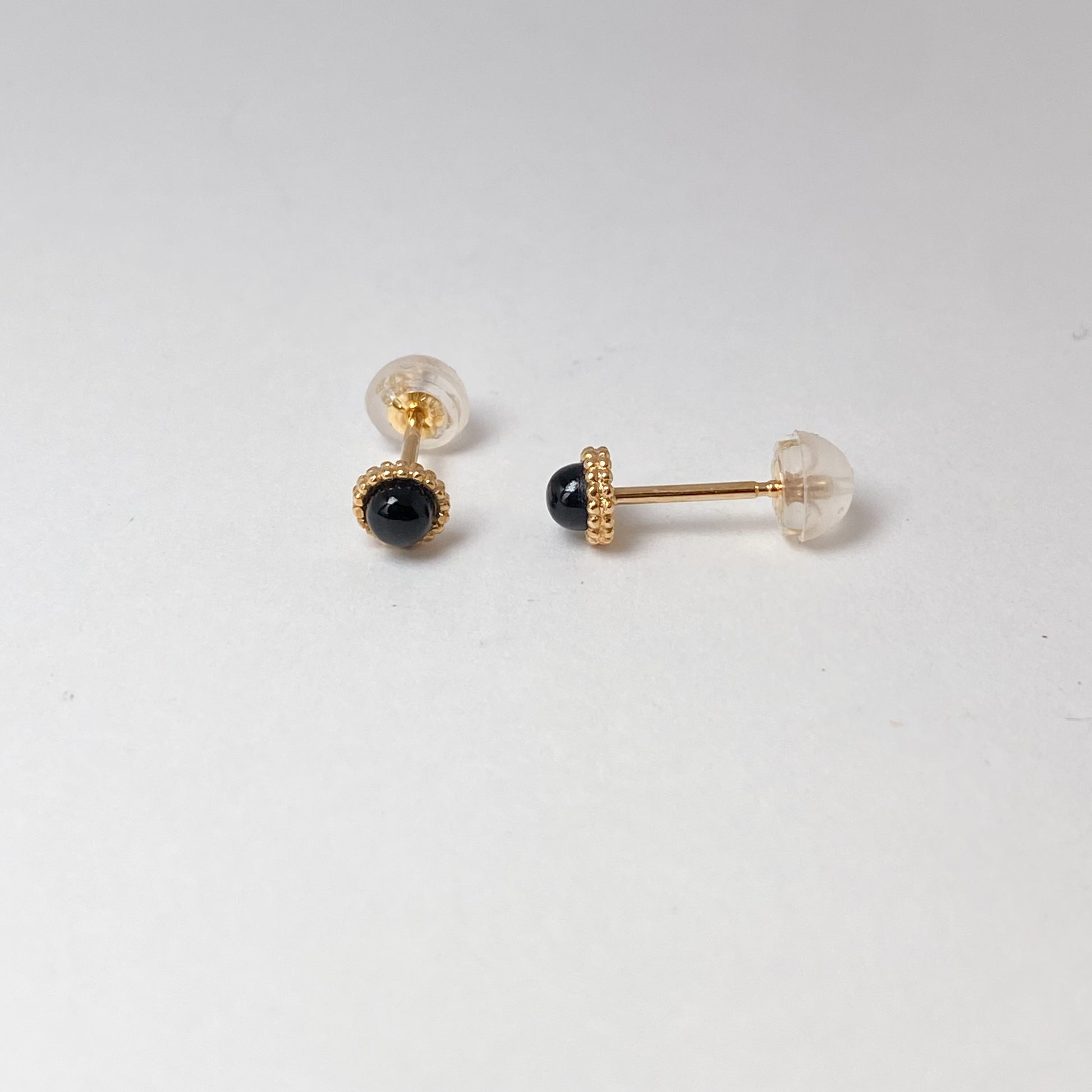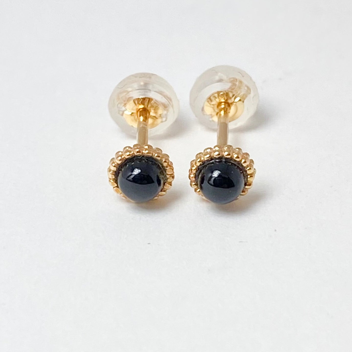 深みのあるブラックオニキスを、繊細な2段のミルで縁取った上品なピアスです。