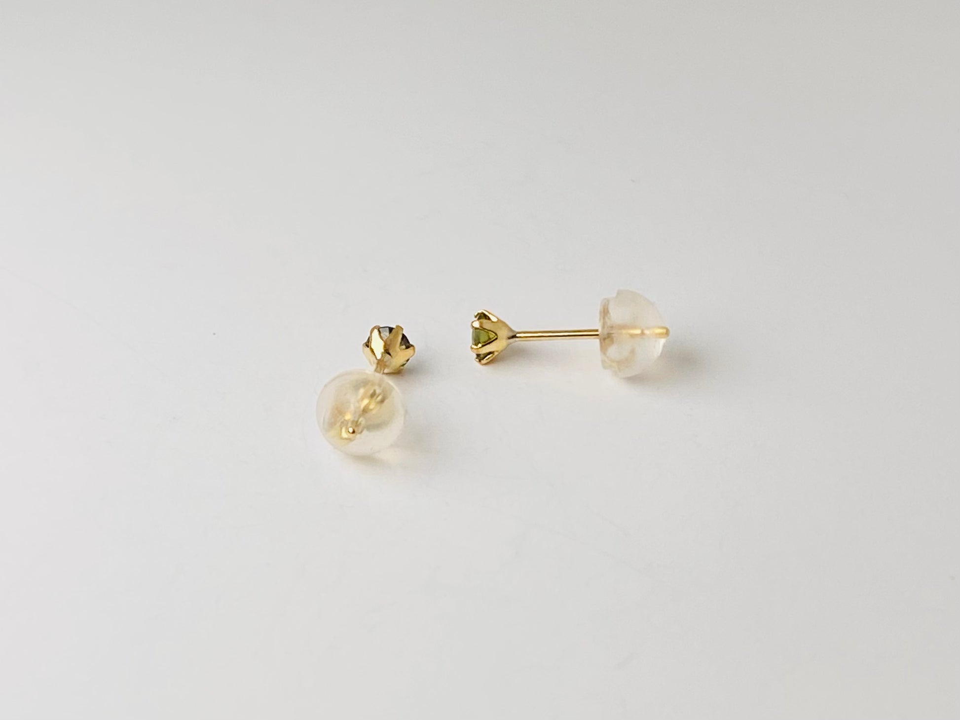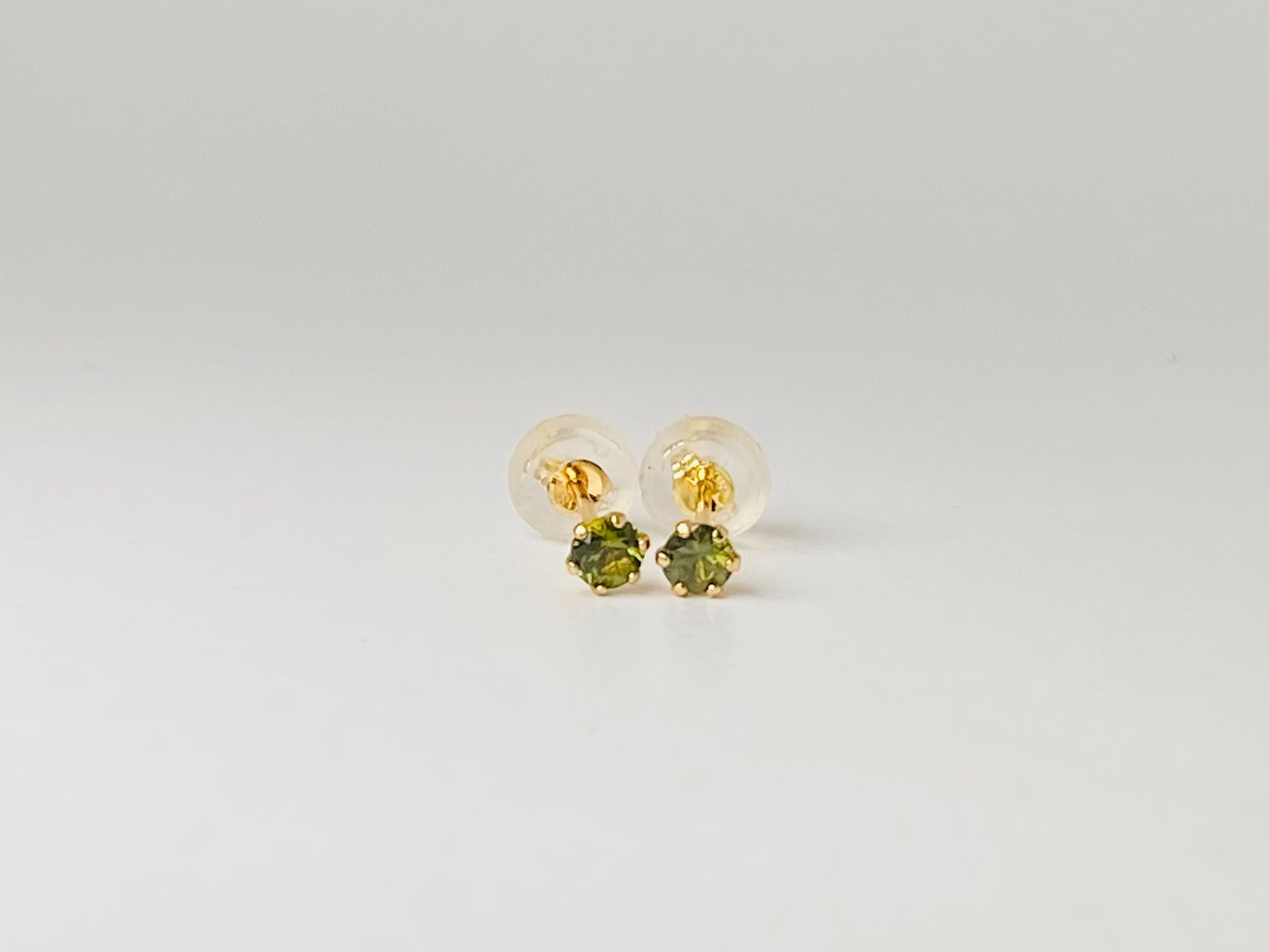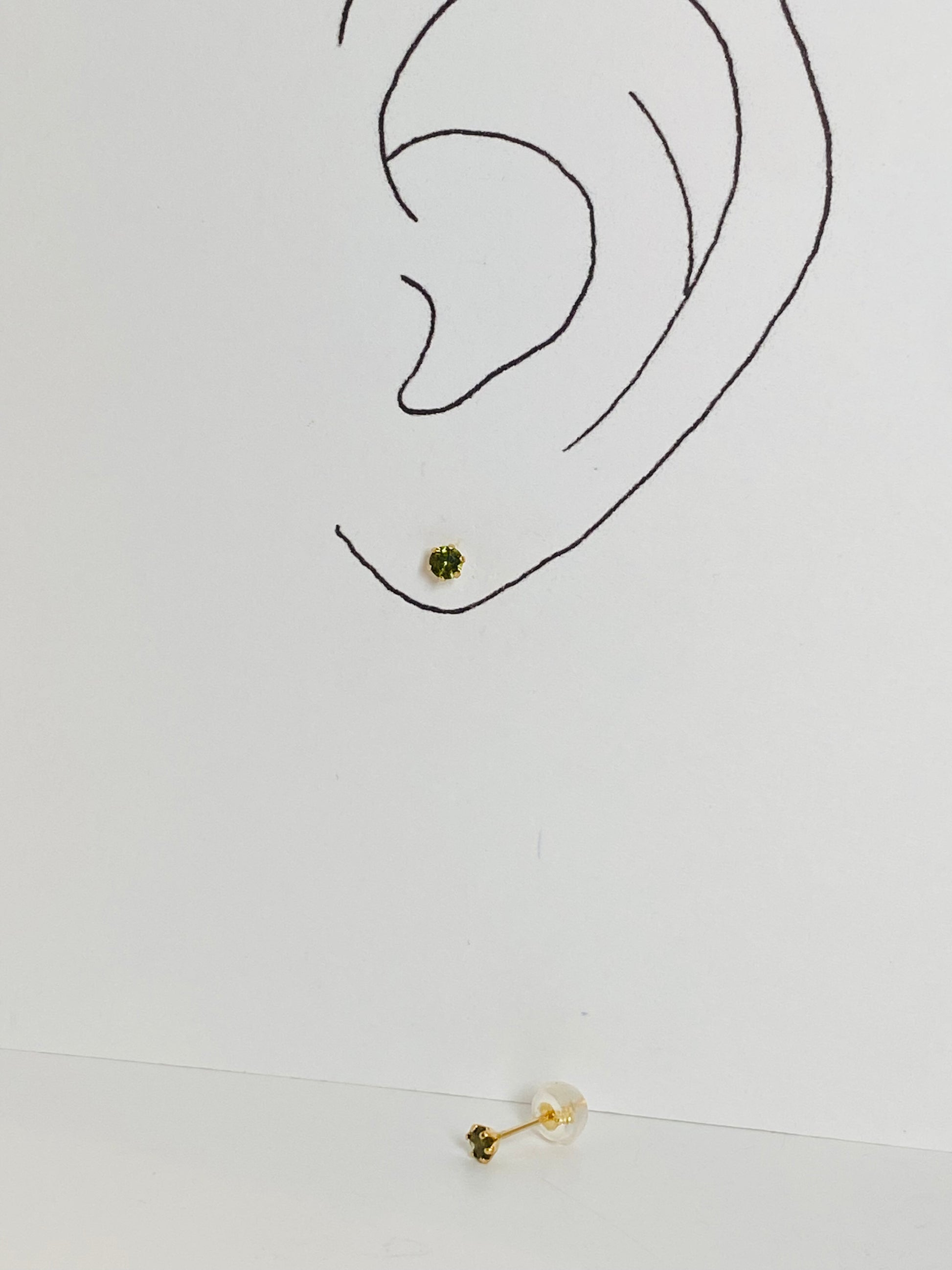 稀少なグリーンジルコンが一粒のスタッドピアスになりました。