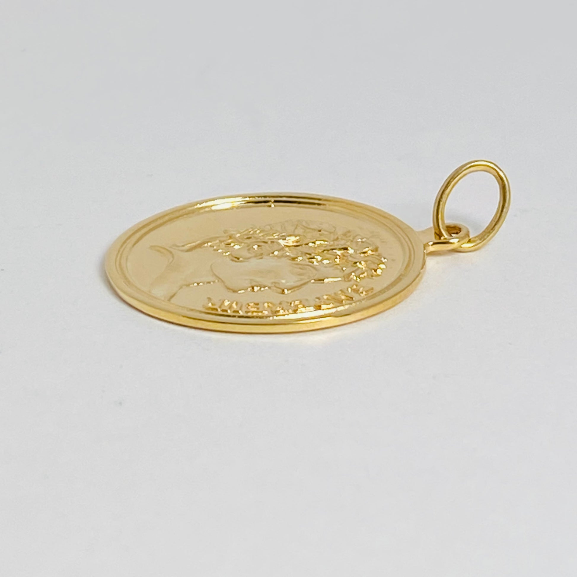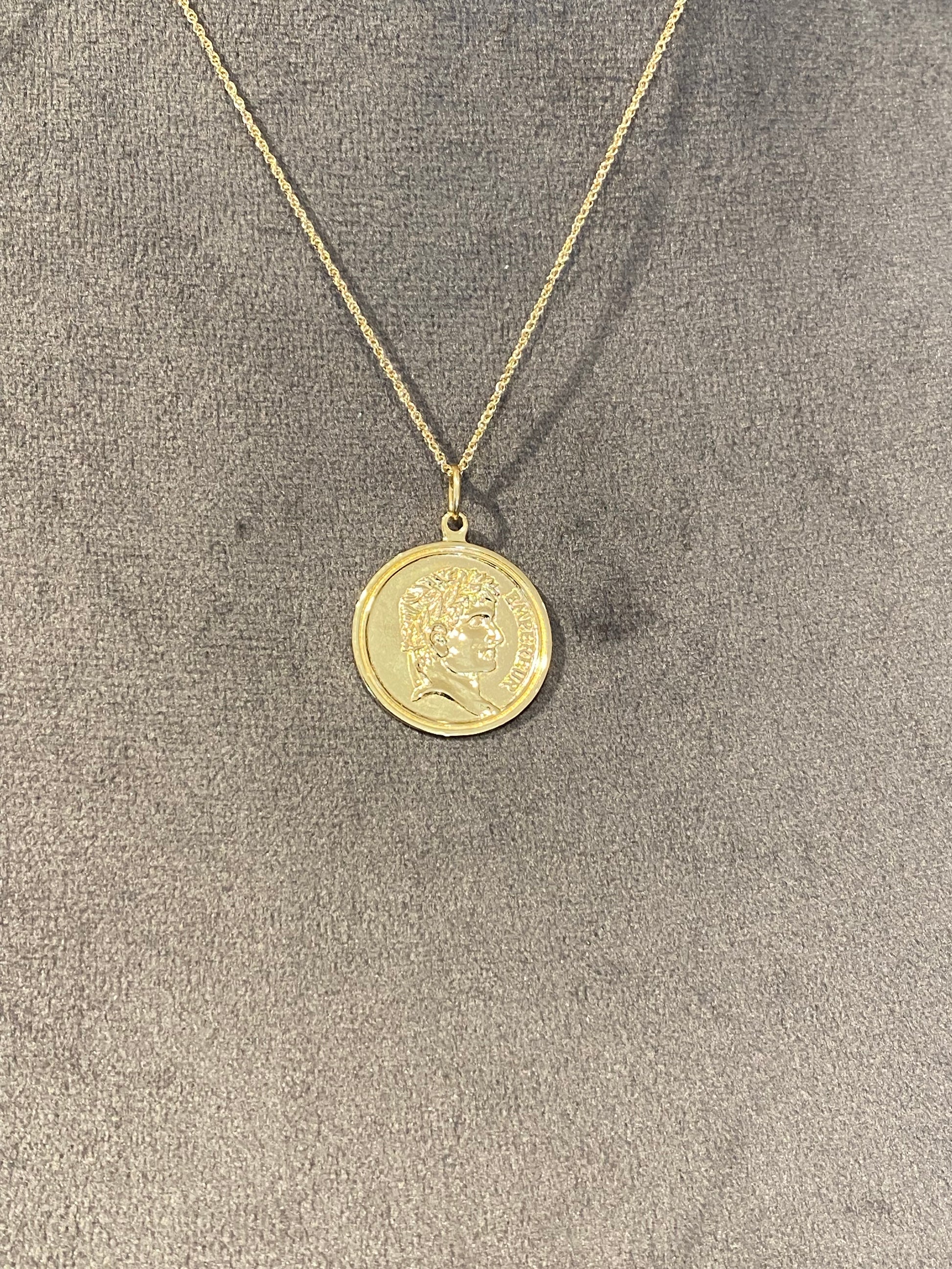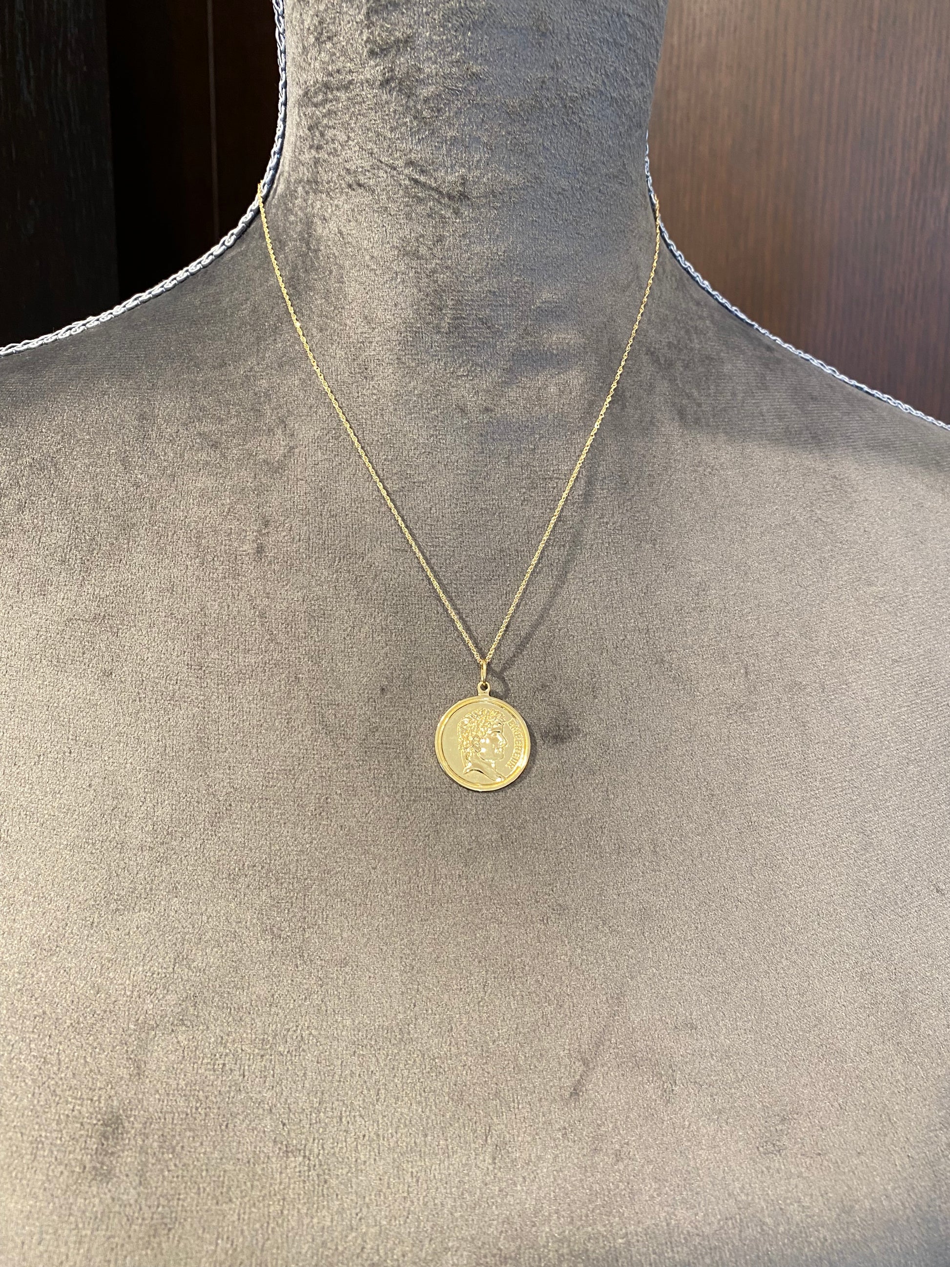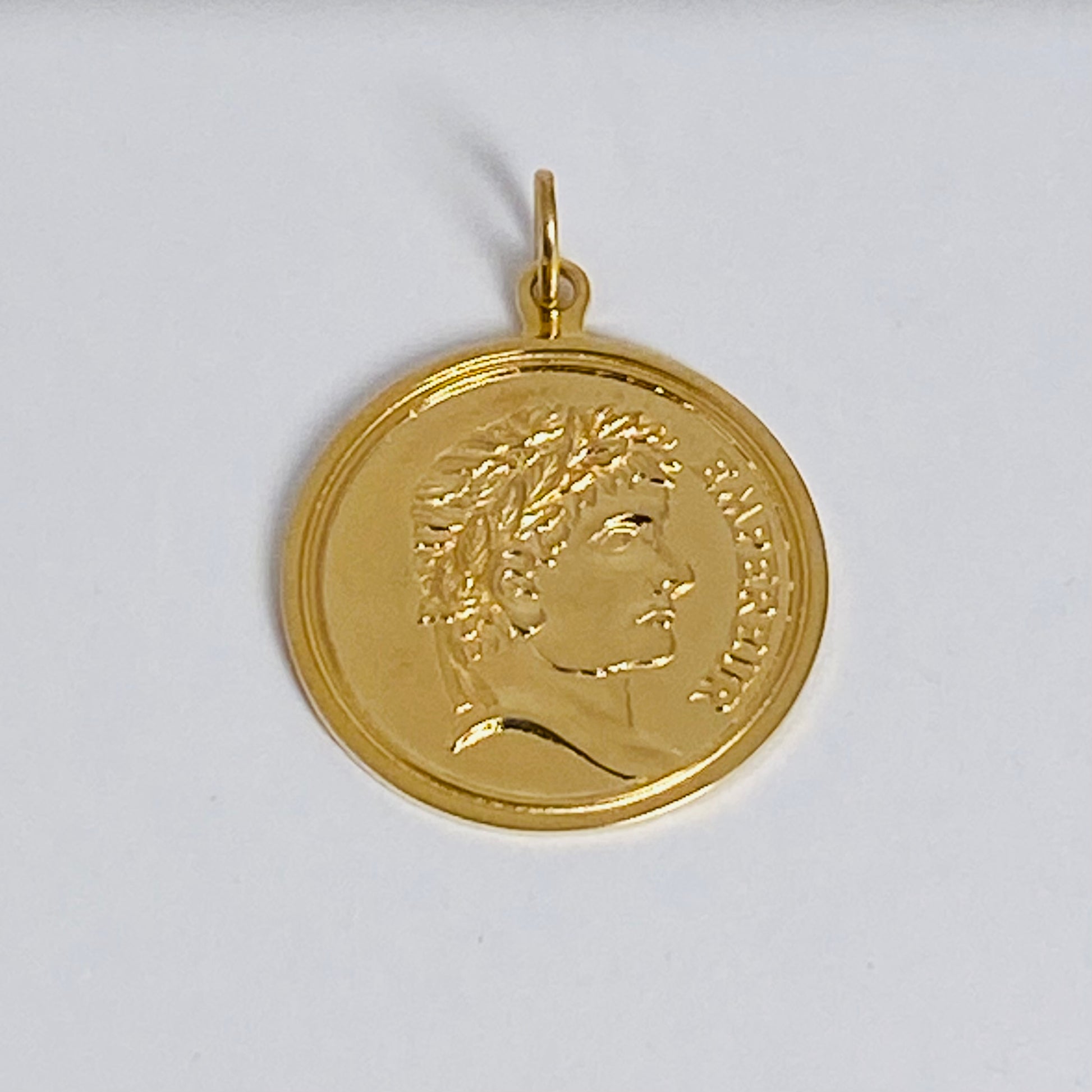 古代コインのように、横顔の男性像が立体的に刻まれたK18コイントップです。