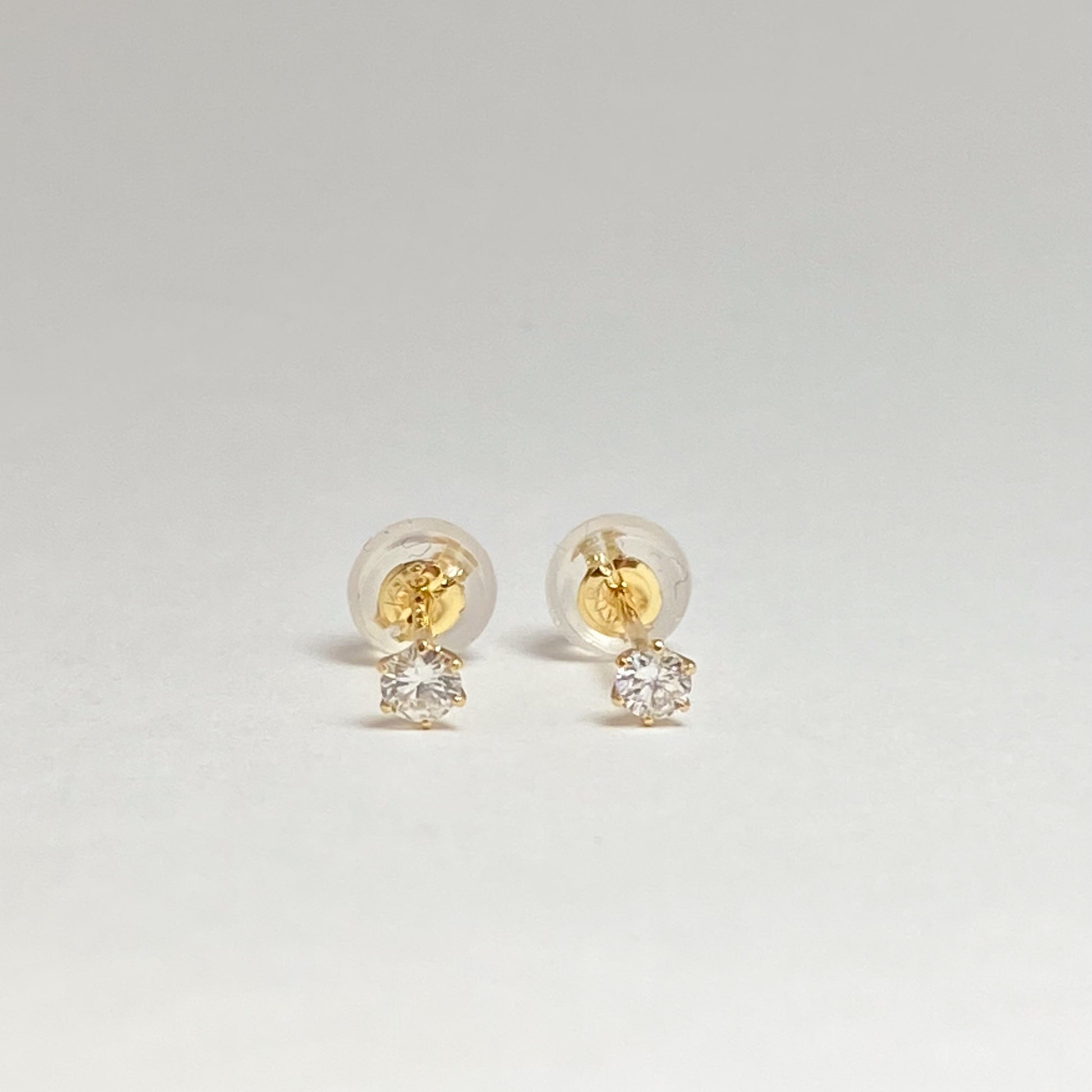 6本爪で丁寧に留めたダイヤモンドが、耳元でさりげなく輝くピアスです。