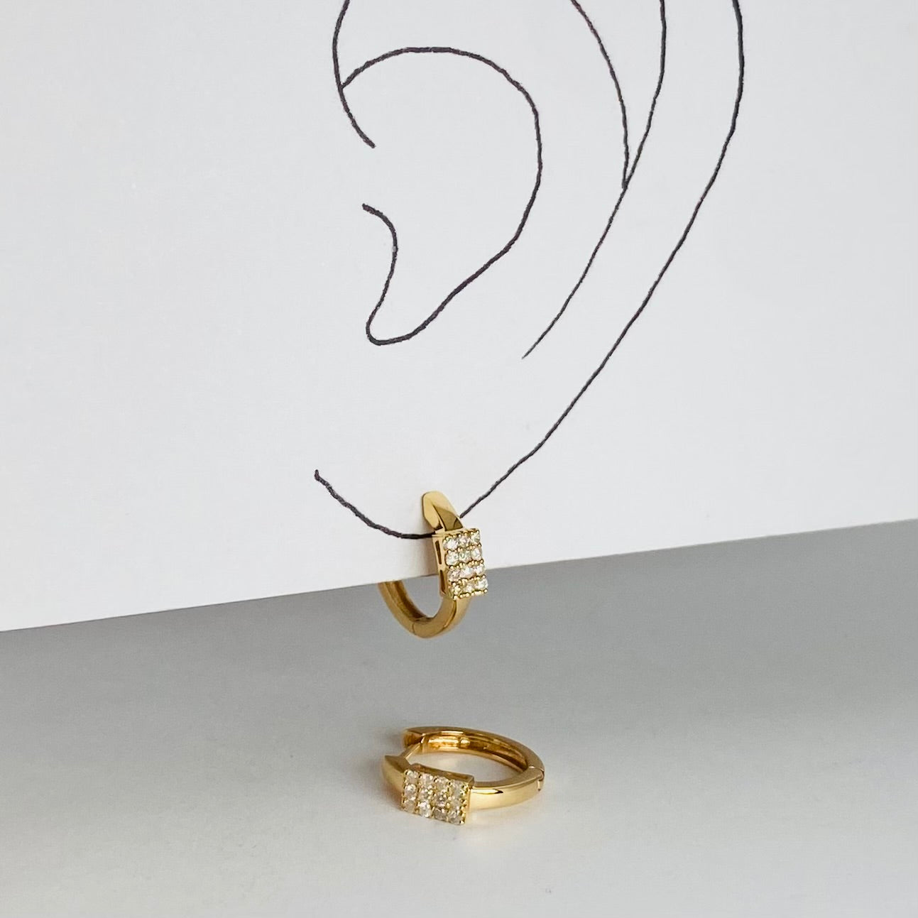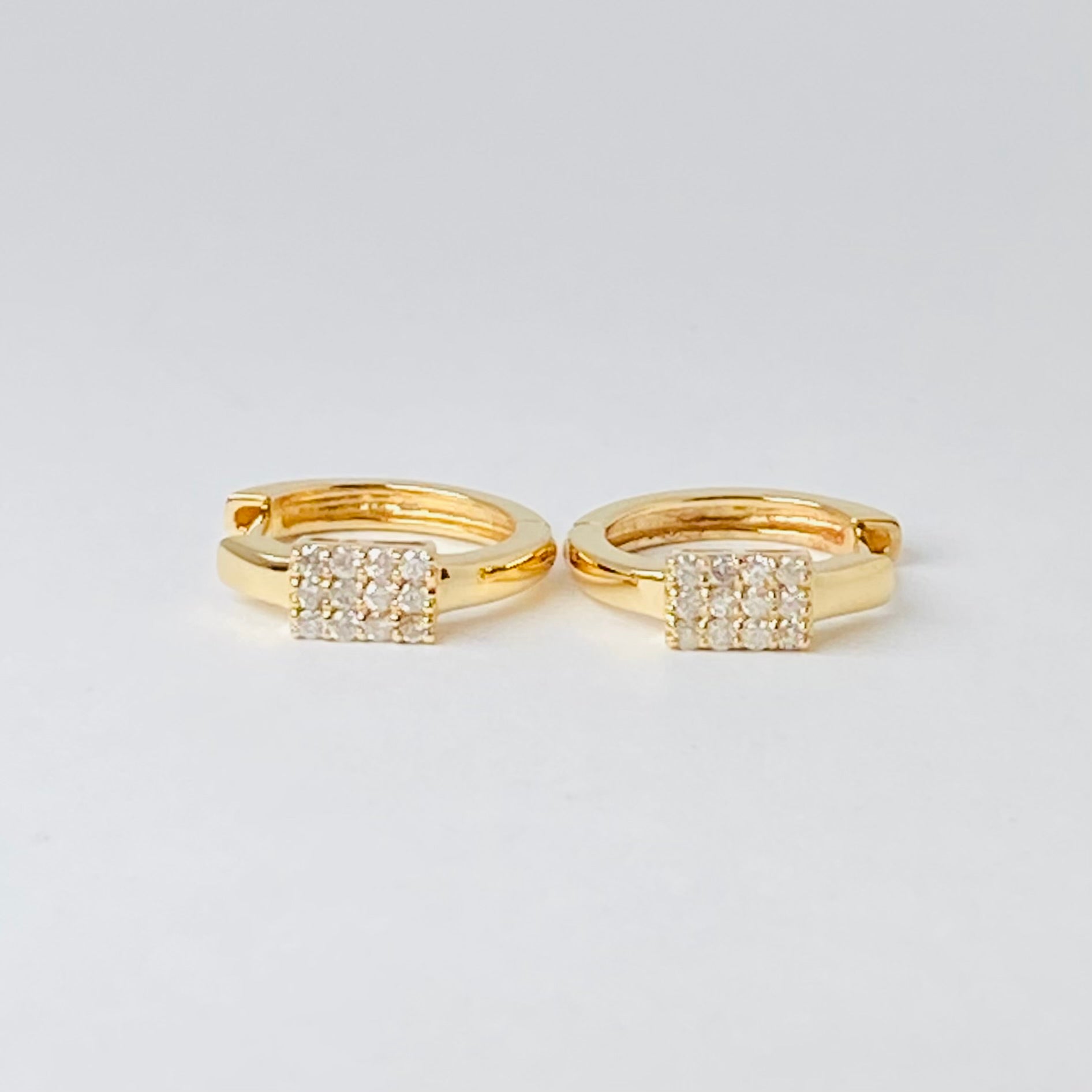 スクエアにセッティングしたダイヤモンドが輝くK18イエローゴールドのピアスです。
