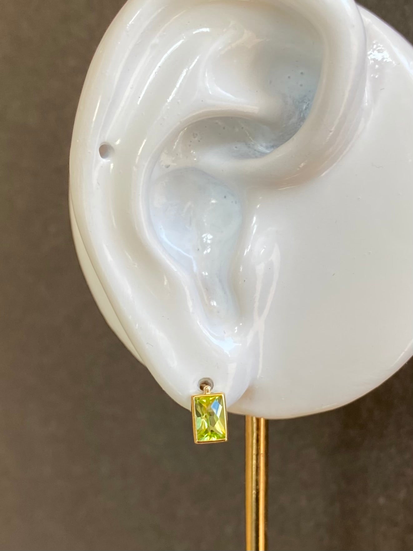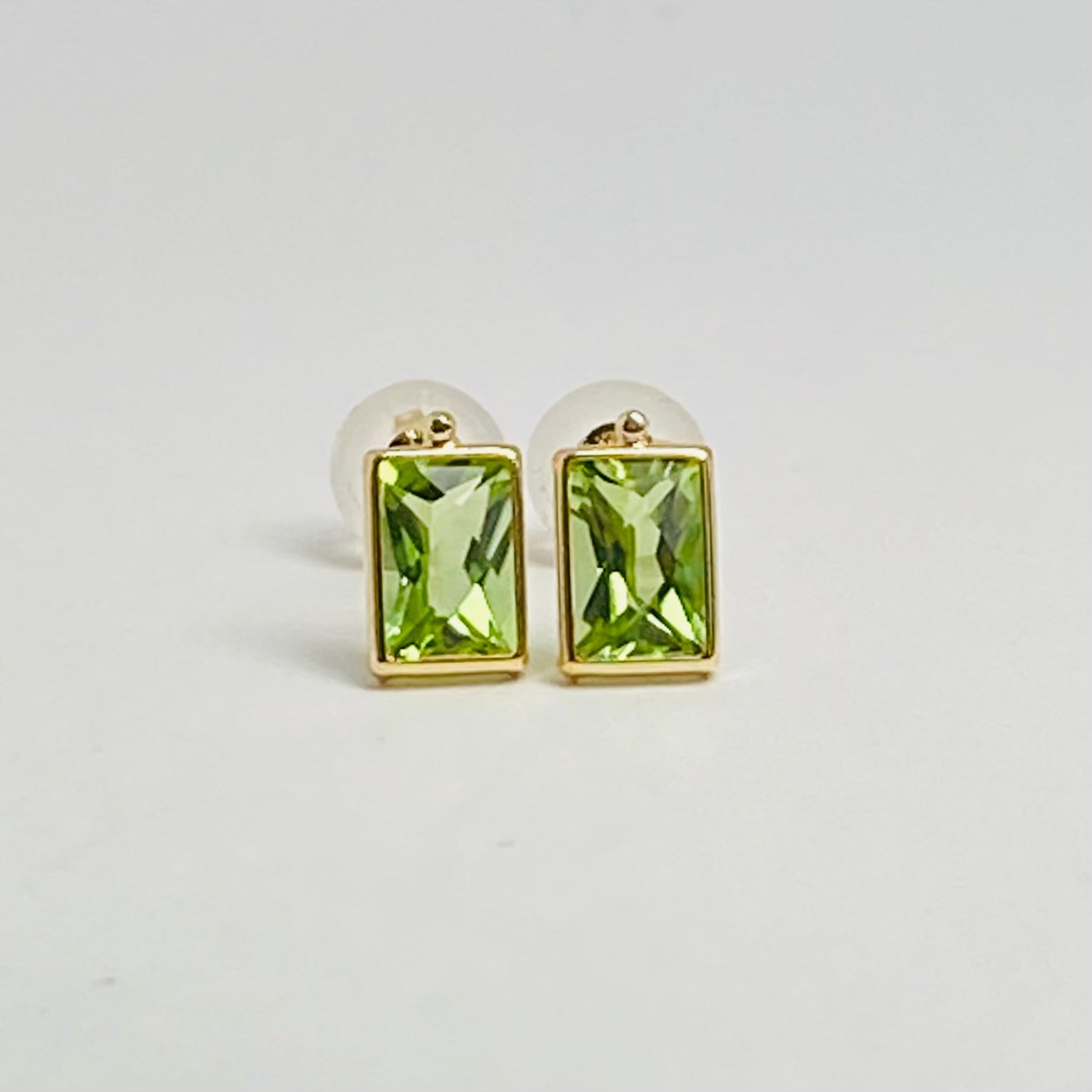 みずみずしいグリーンの輝きを放つペリドットをK18ゴールドのフレームで包み込んだピアスです。