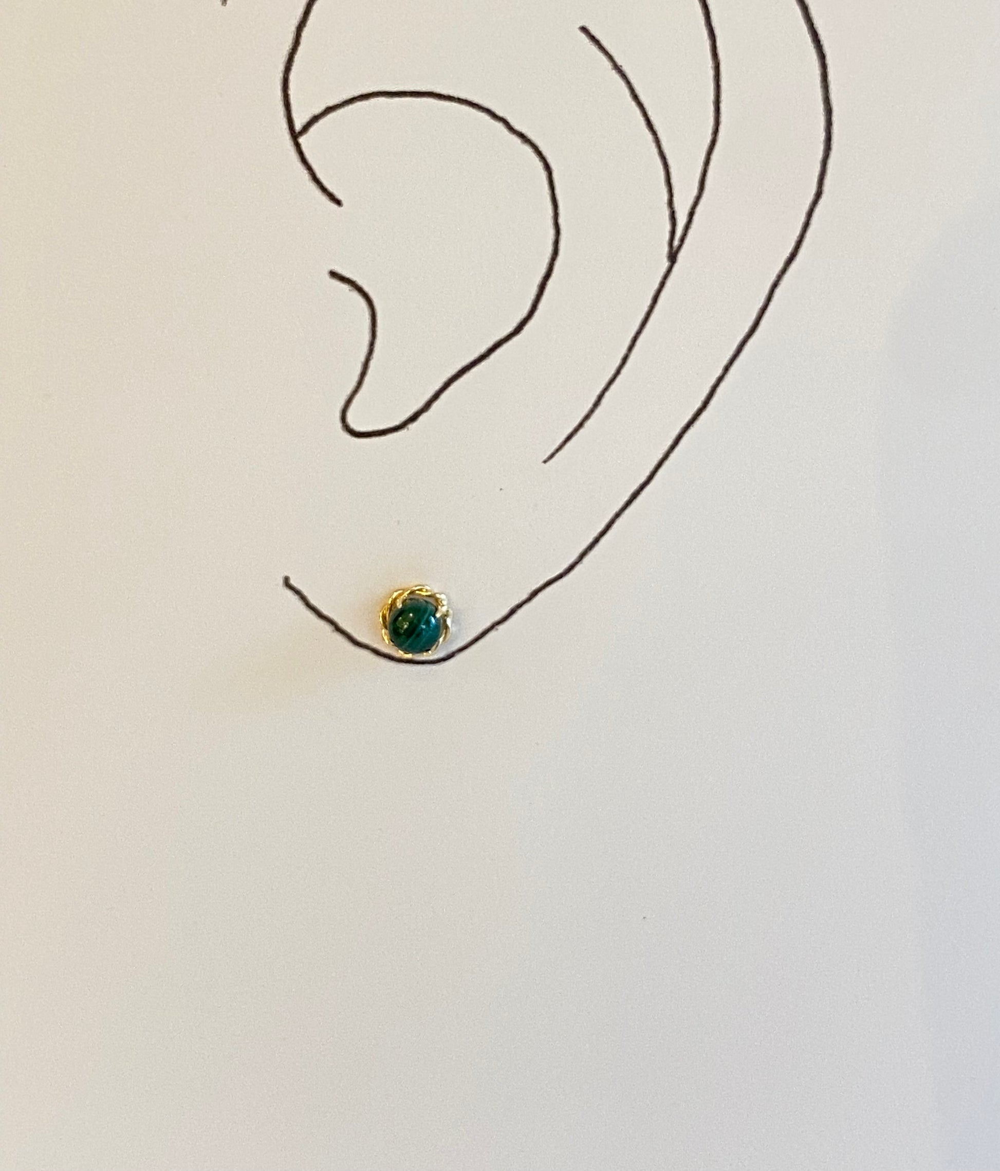 ひとつひとつ異なる模様が楽しめるのも、マラカイトならではの魅力。小ぶりでも印象的なピアスです。