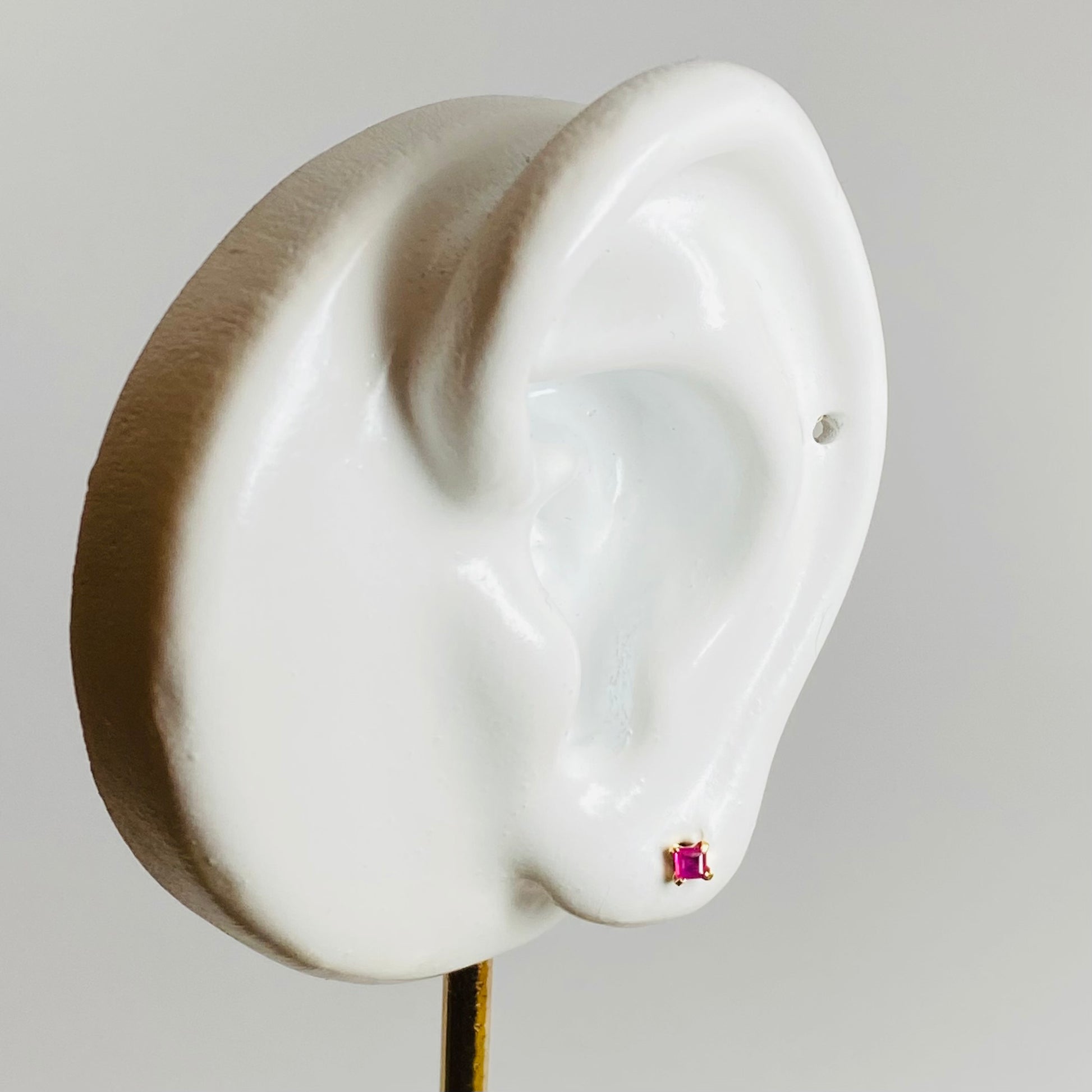 小さなスクエアカットのルビーが耳元でさりげなく輝きます。