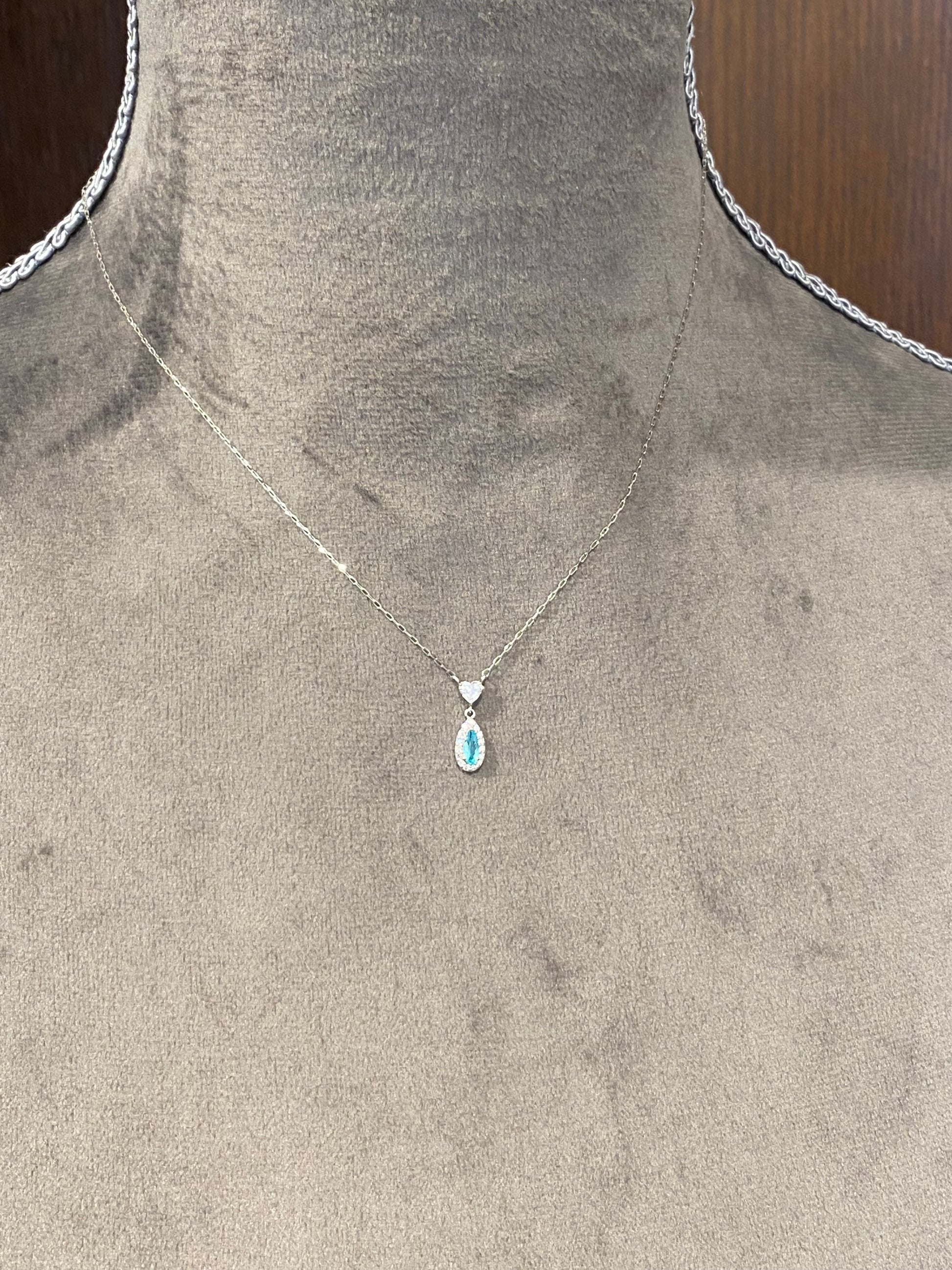 その独特のネオンブルーが胸もとで静かに輝く、上質なネックレスです。