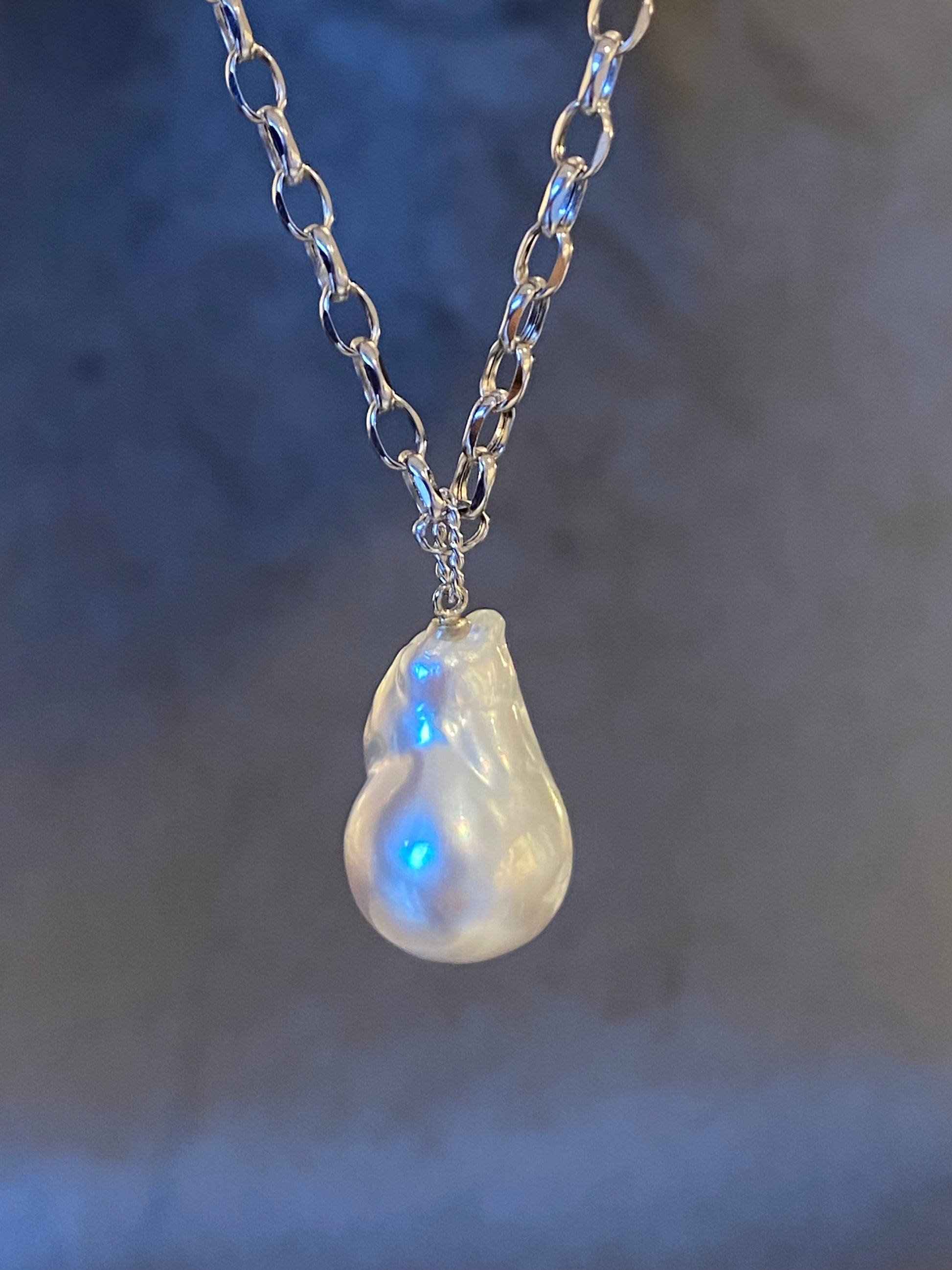 縦約2センチの南洋白蝶バロックパールのペンダントトップです。