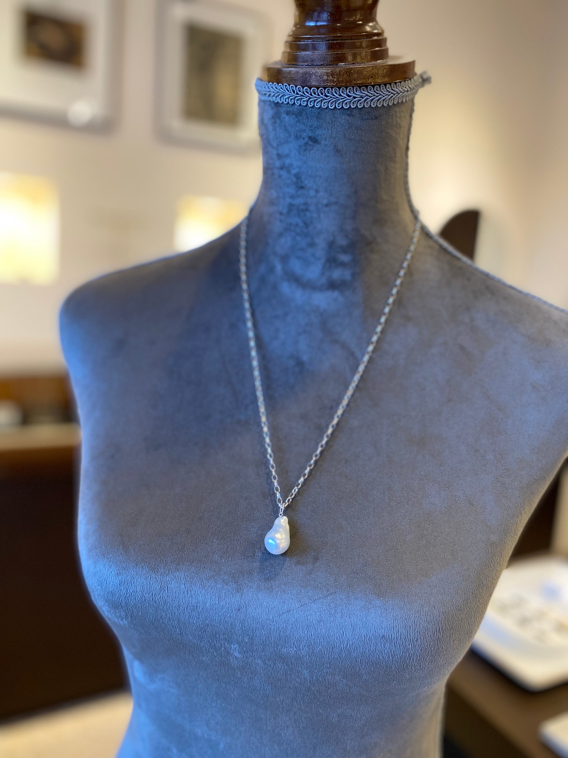 自然のままの輪郭が美しいバロックパールひ,優しい艶と奥行きのある輝きが魅力。