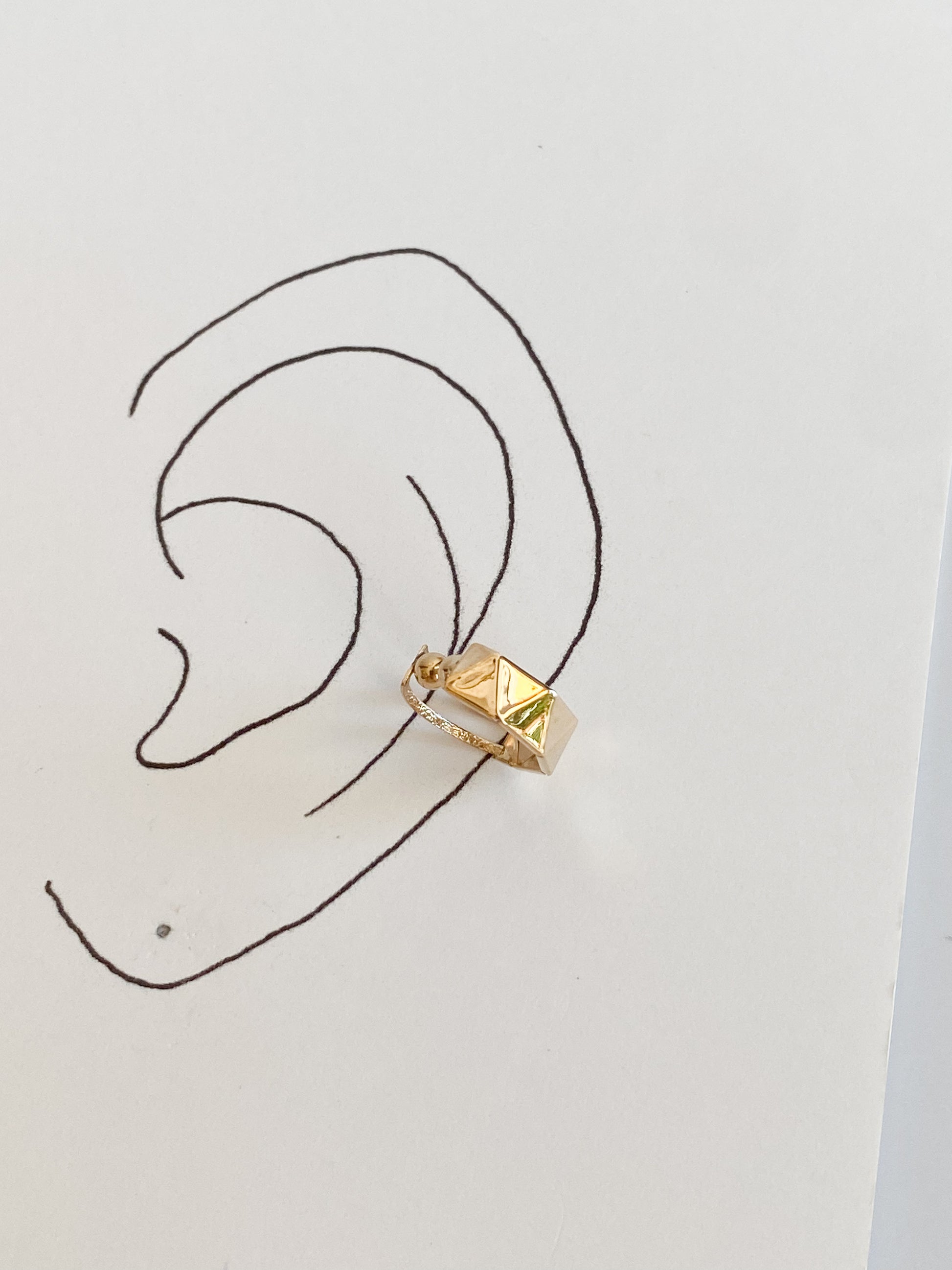 シャープなカッティングのデザインが印象的なイヤーカフです。