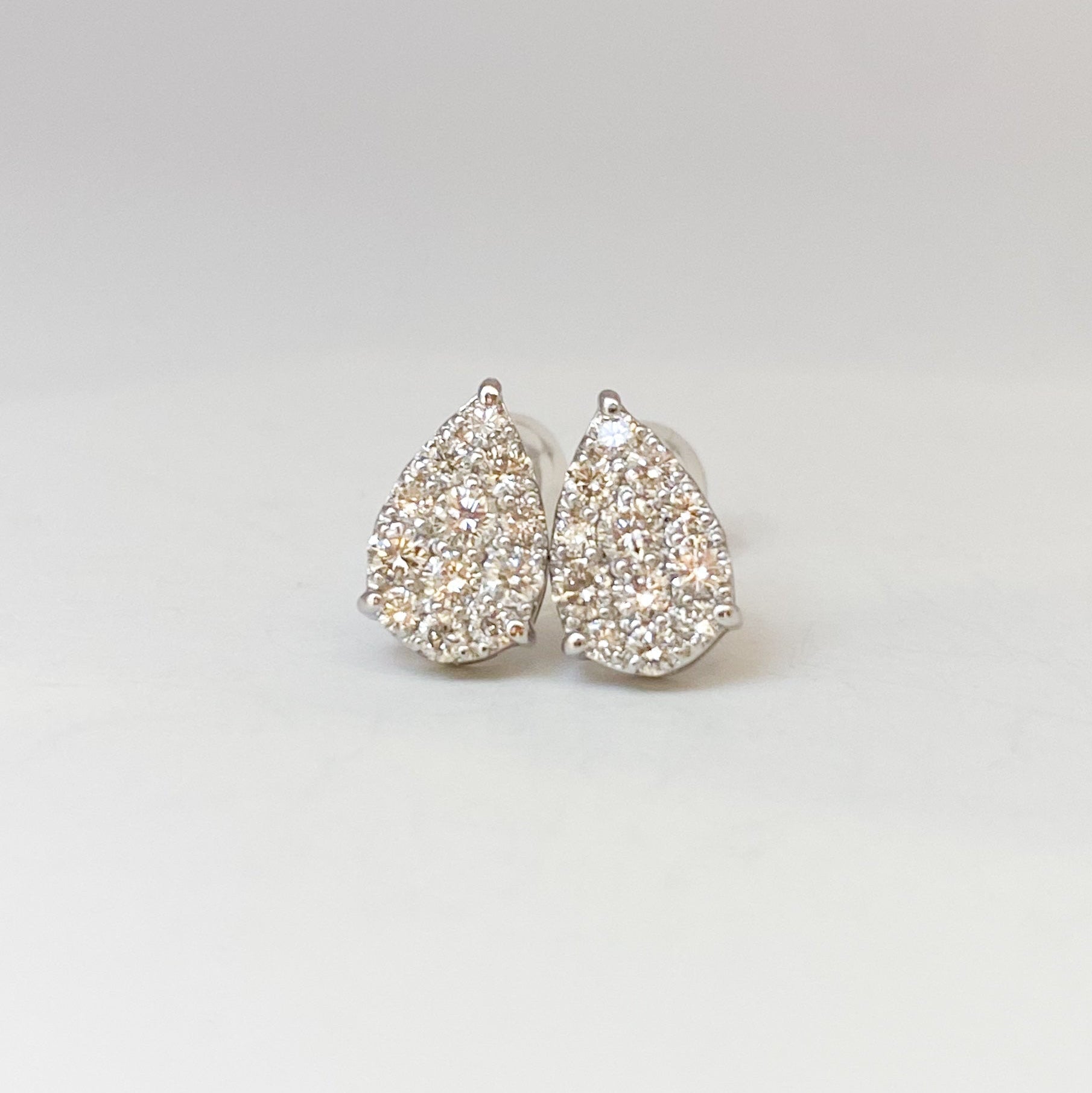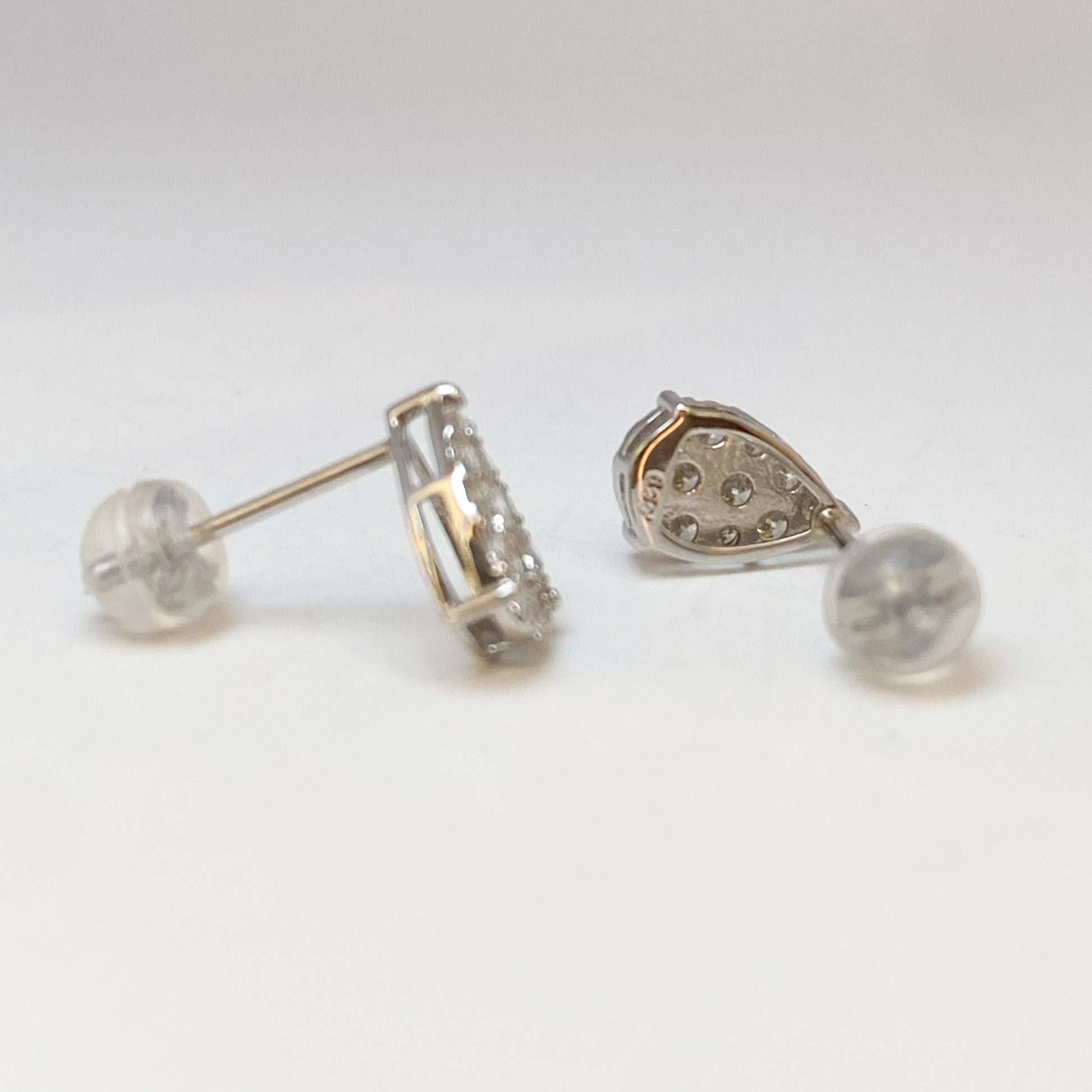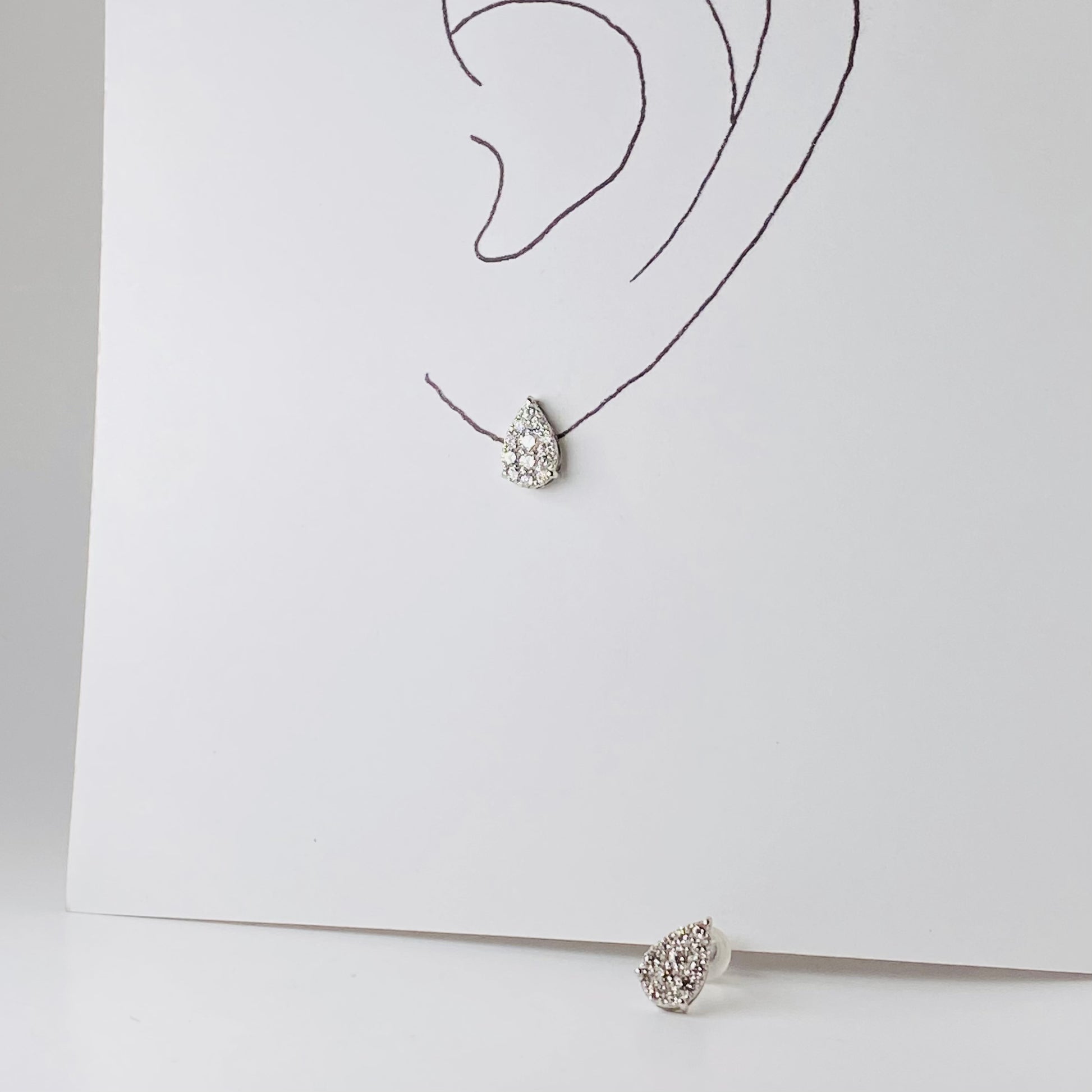 しずく型の優美なフォルムにダイヤモンドが敷き詰められ、耳元で上品な輝きを放ちます。普段使いはもちろん、特別なシーンにも華を添える一品です。