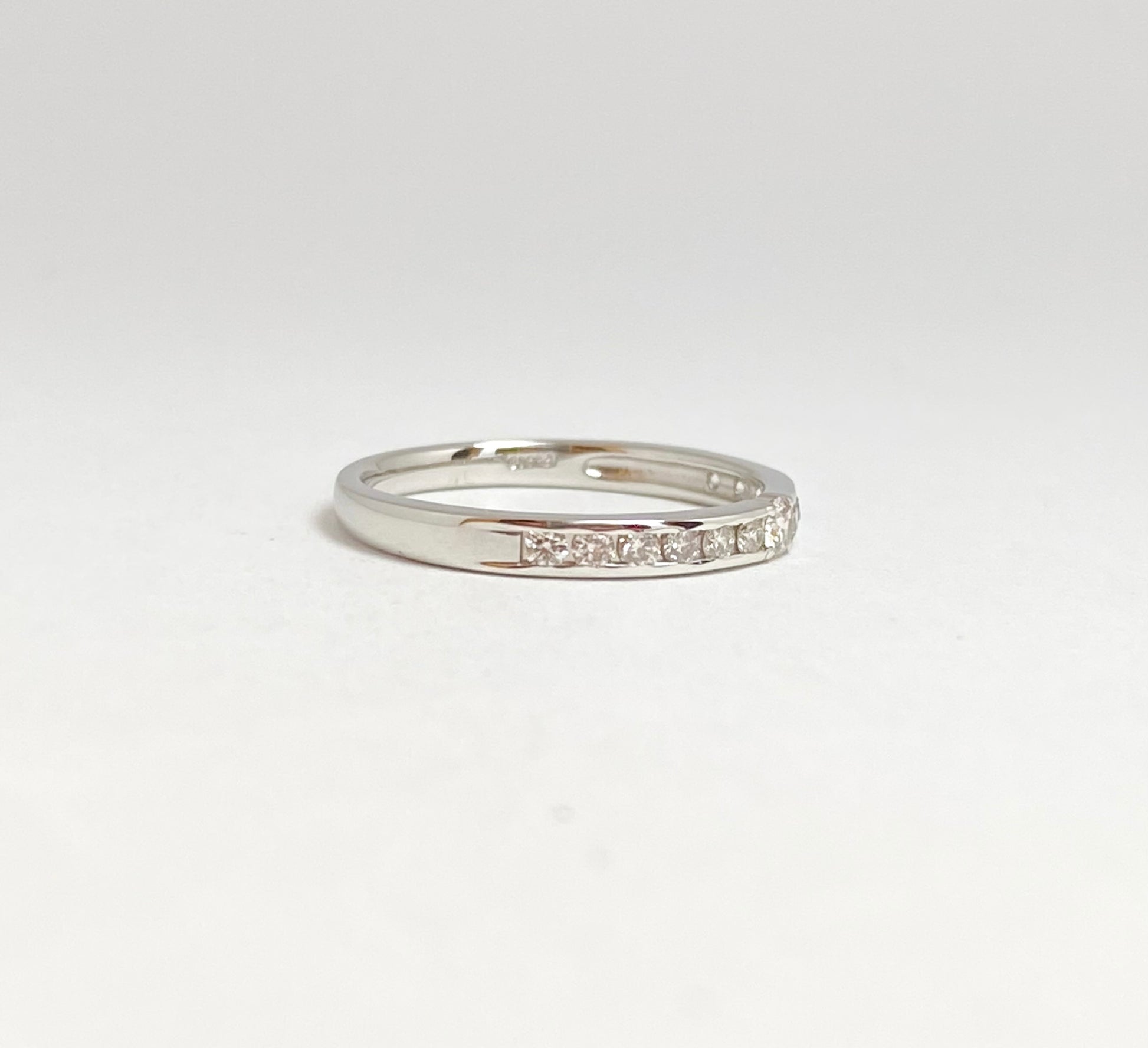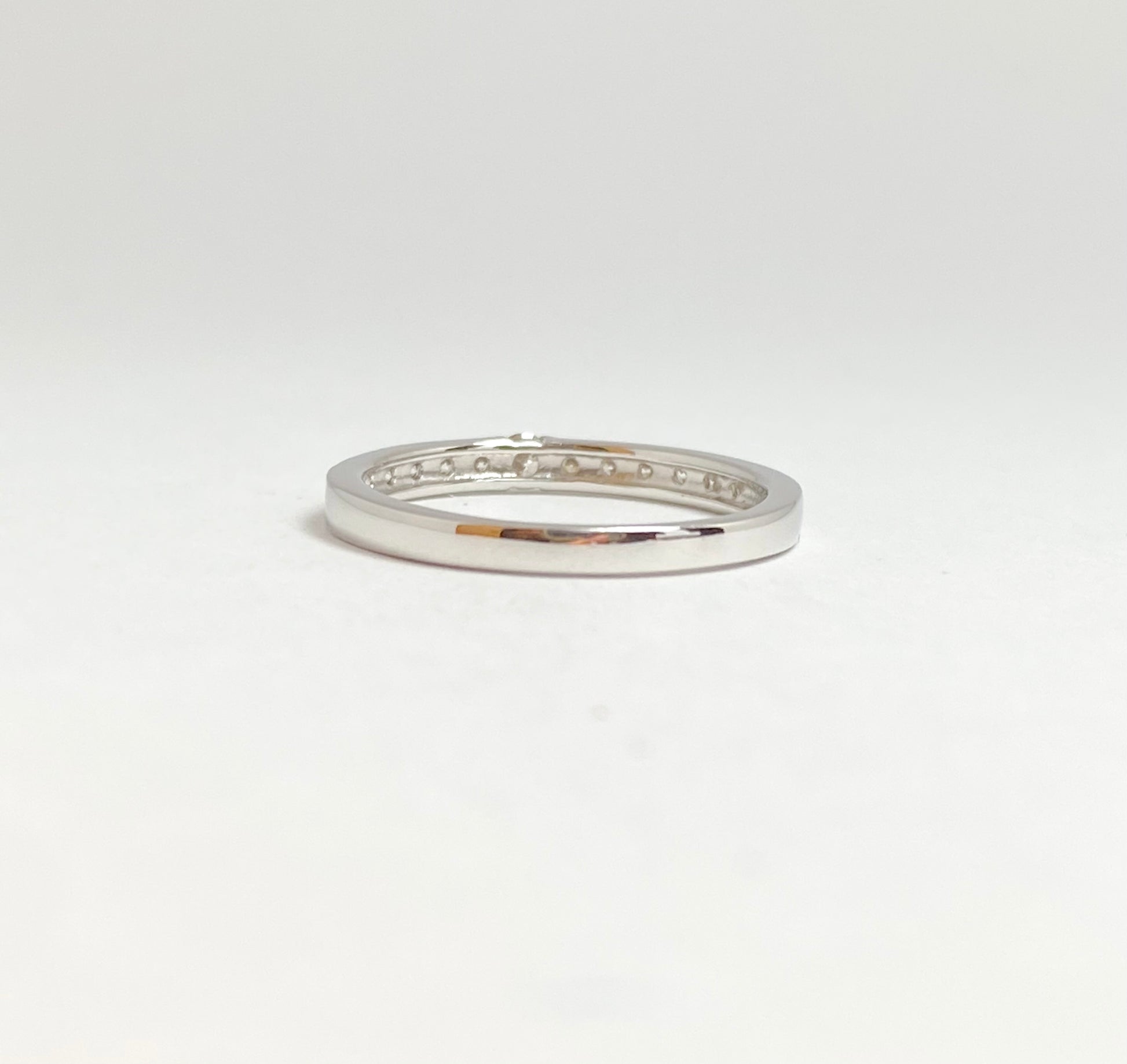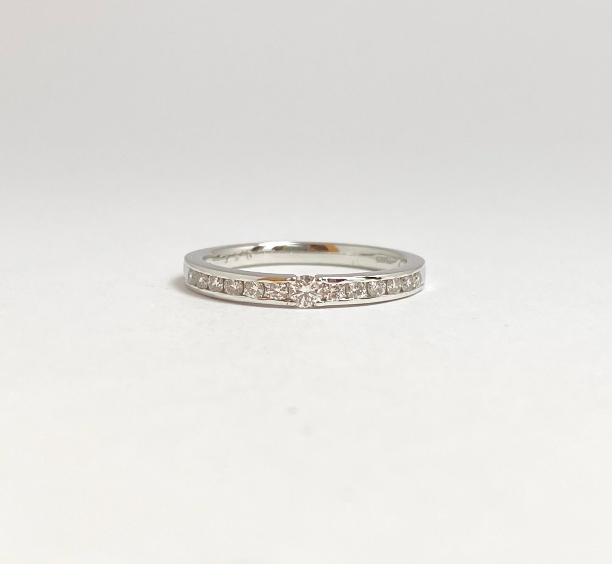 シンプルなハーフエタニティデザインは、重ねづけにもぴったりで、日常のコーディネートにも自然になじみます。