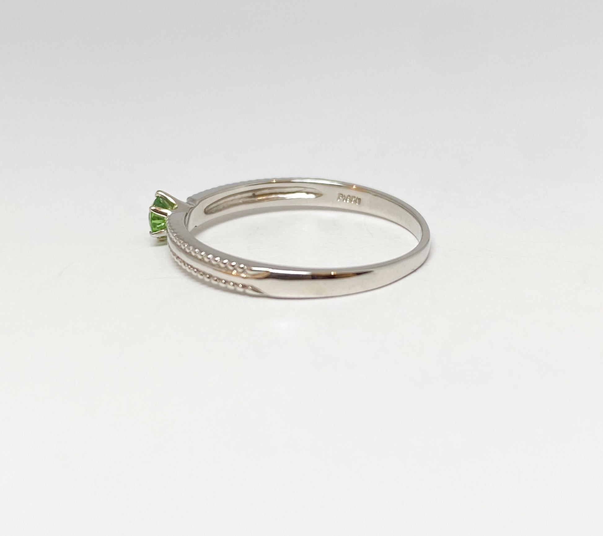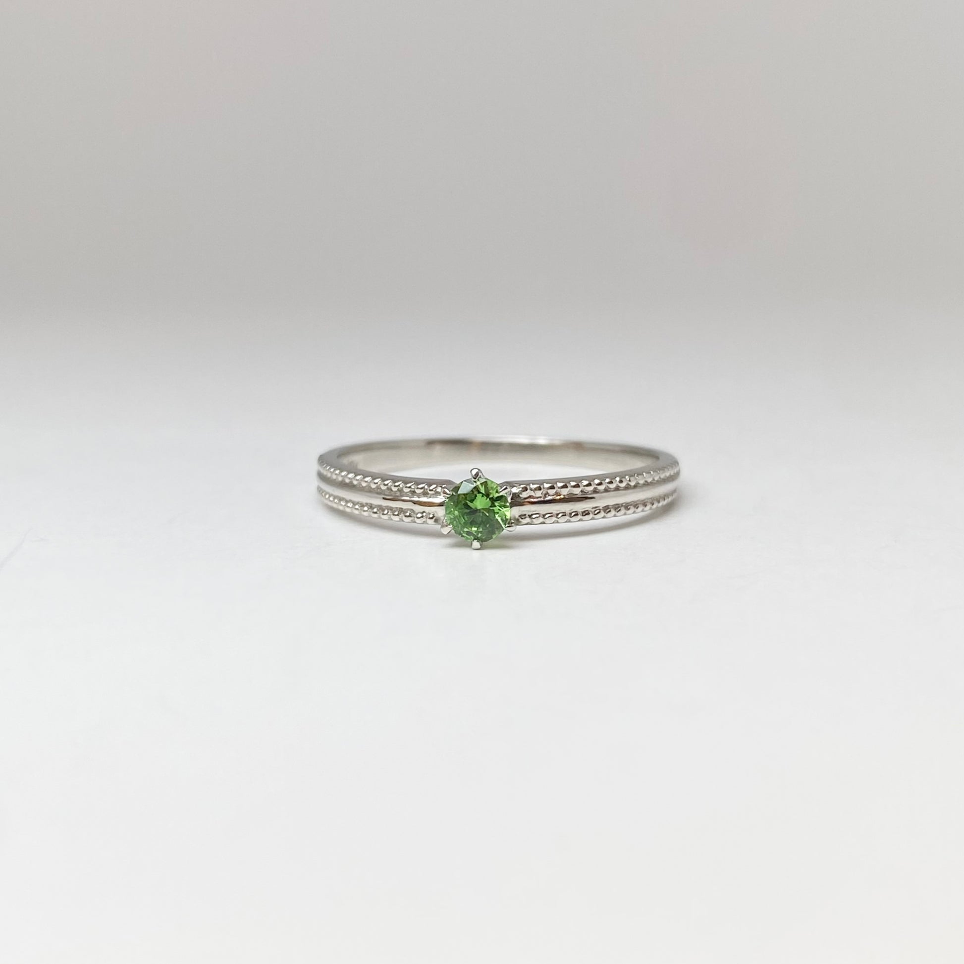 希少な宝石「デマントイドガーネット」をプラチナ枠にセットしたリングです。