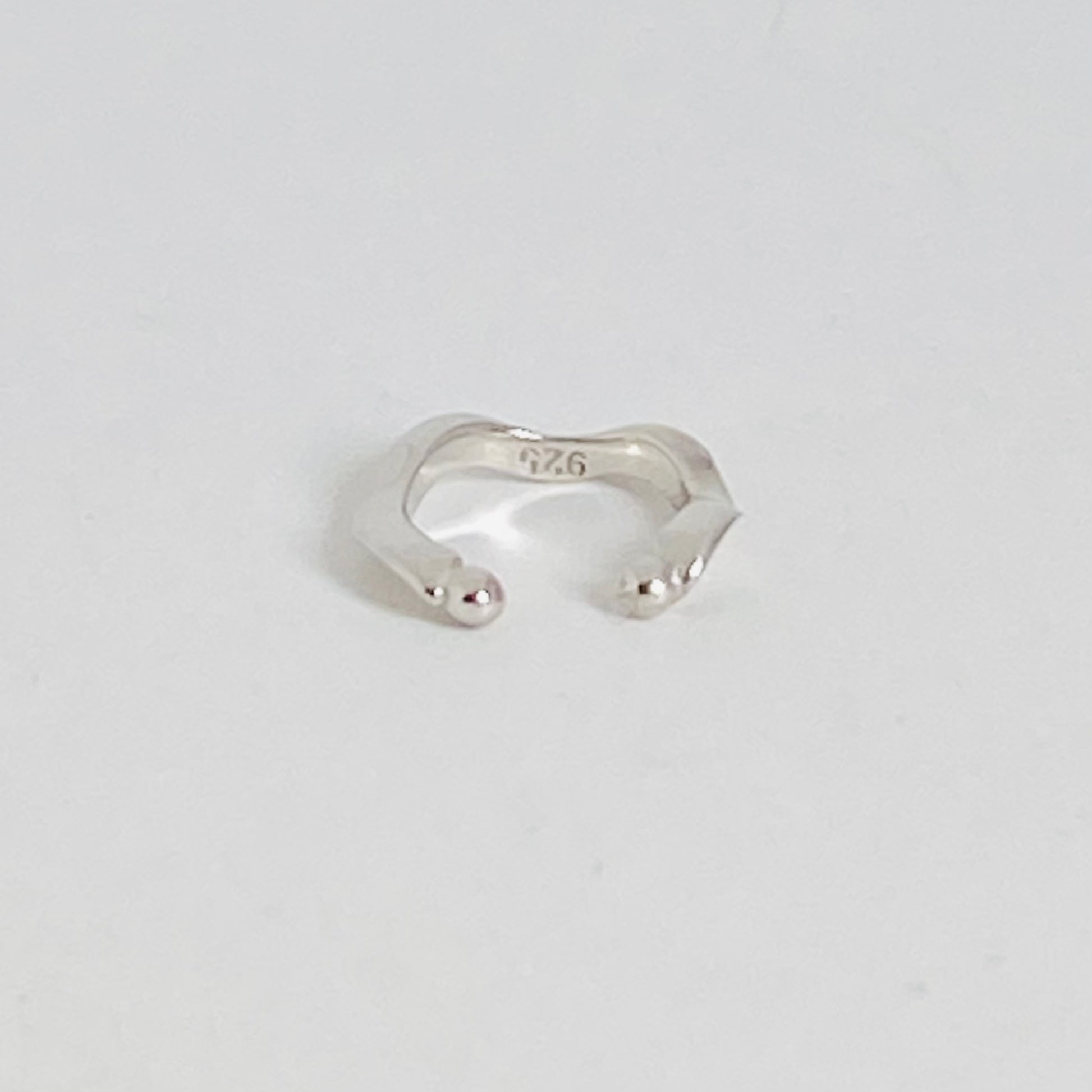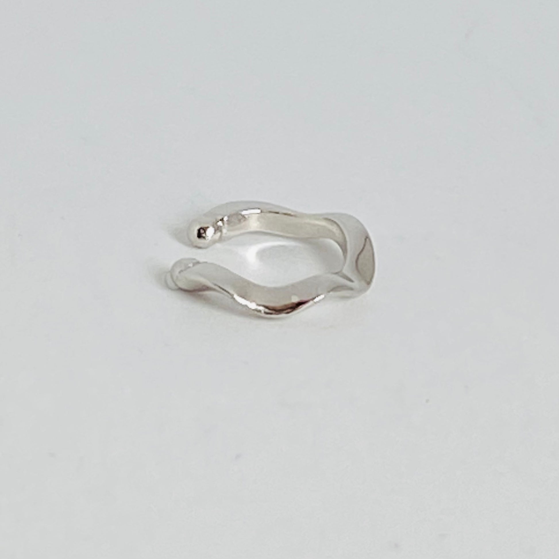 流れるようなフォルムが印象的なシルバーイヤカフです。