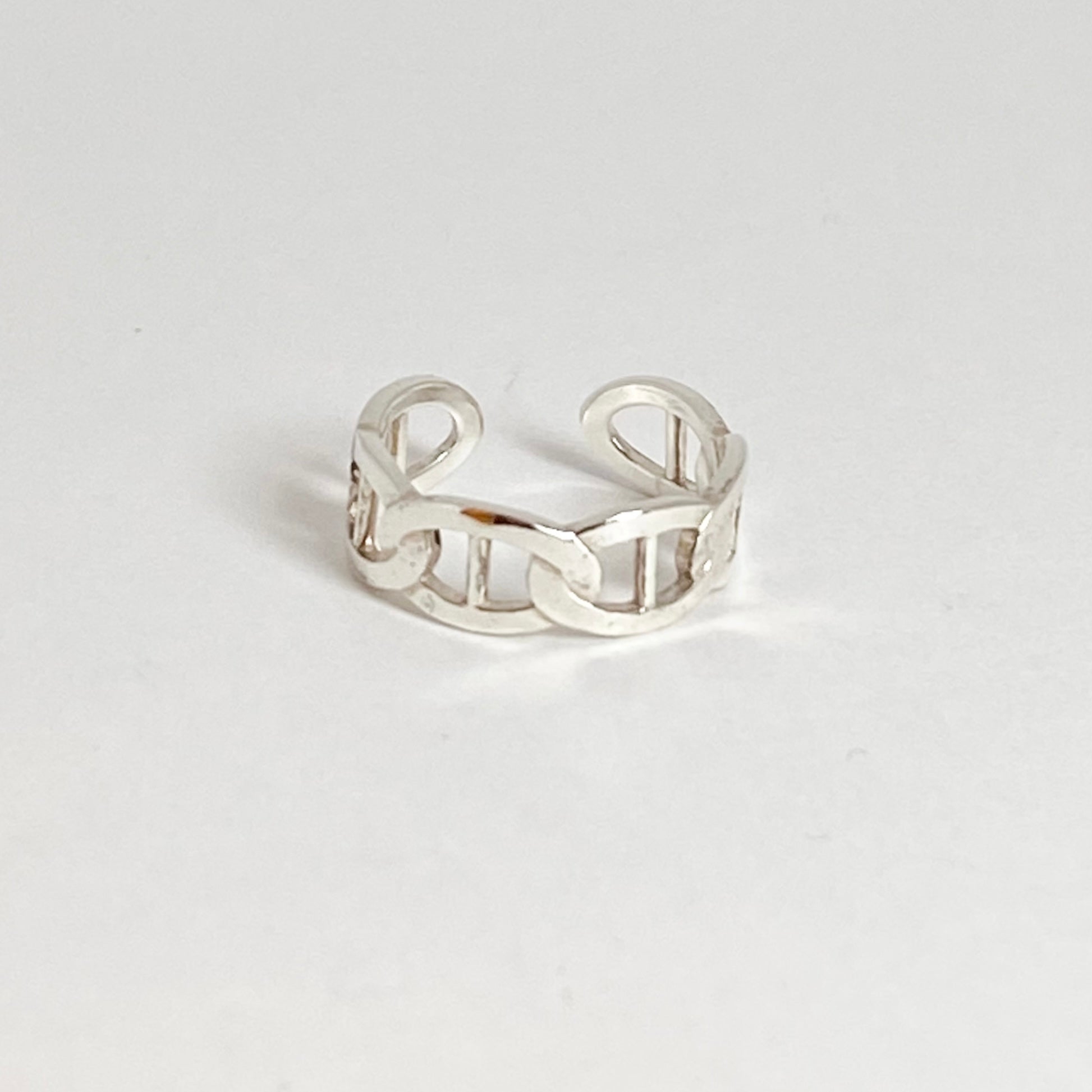 艶やかなシルバーが耳元で美しく映えるチェーンモチーフのイヤカフです。軽やかな抜け感でシンプルなコーディネートに程よいアクセントをプラスします。