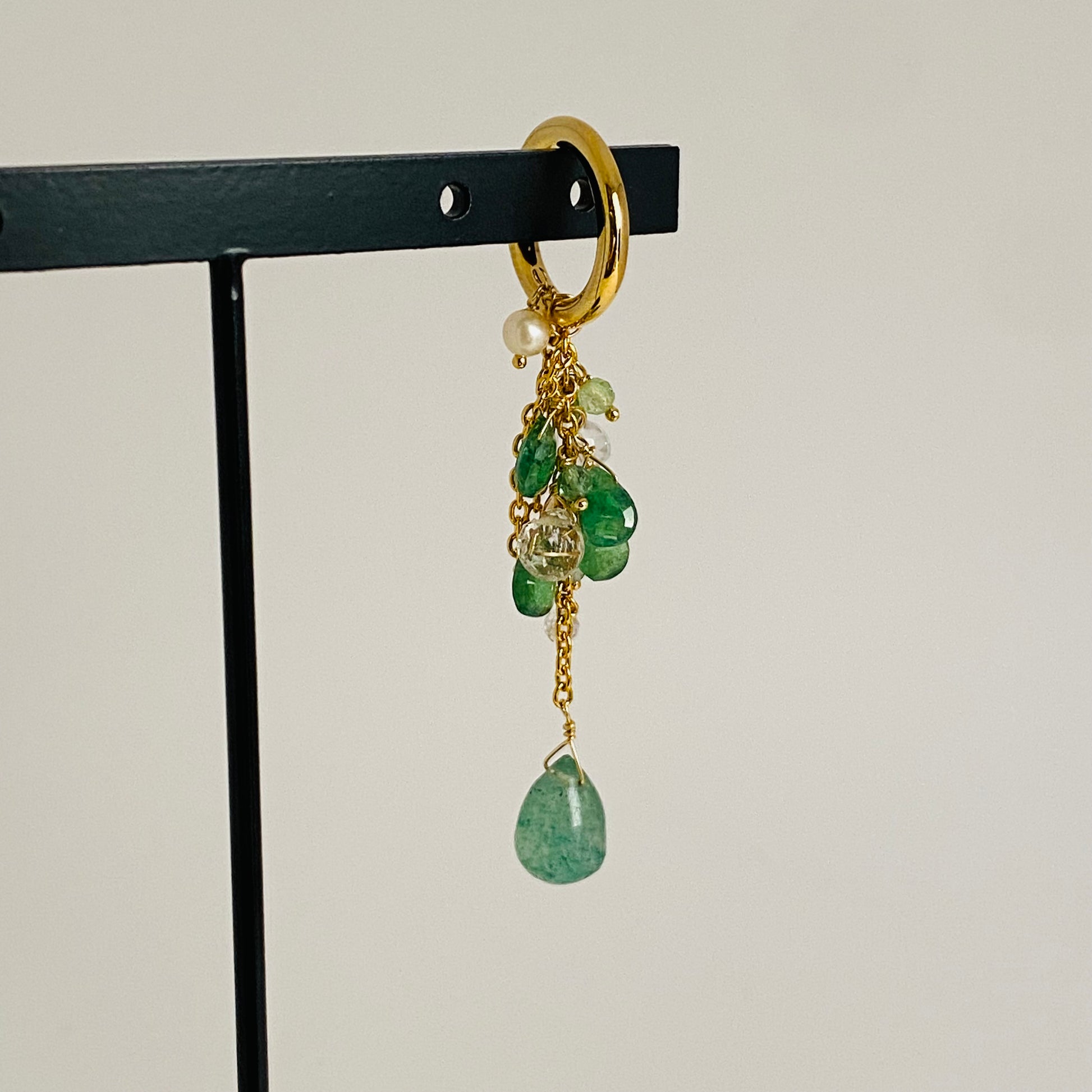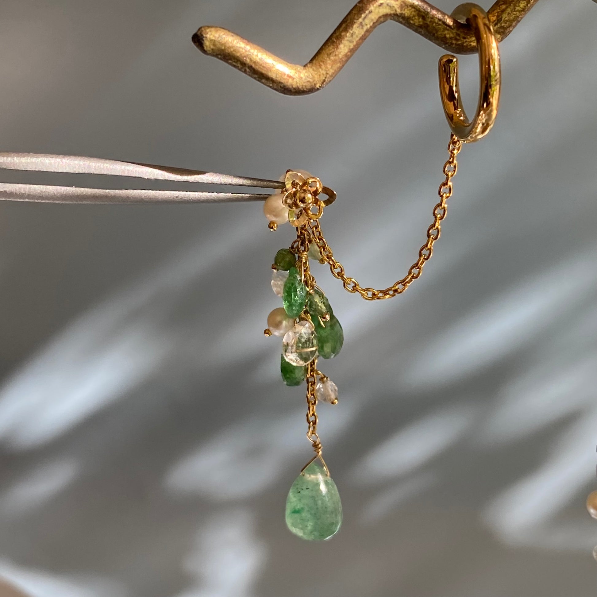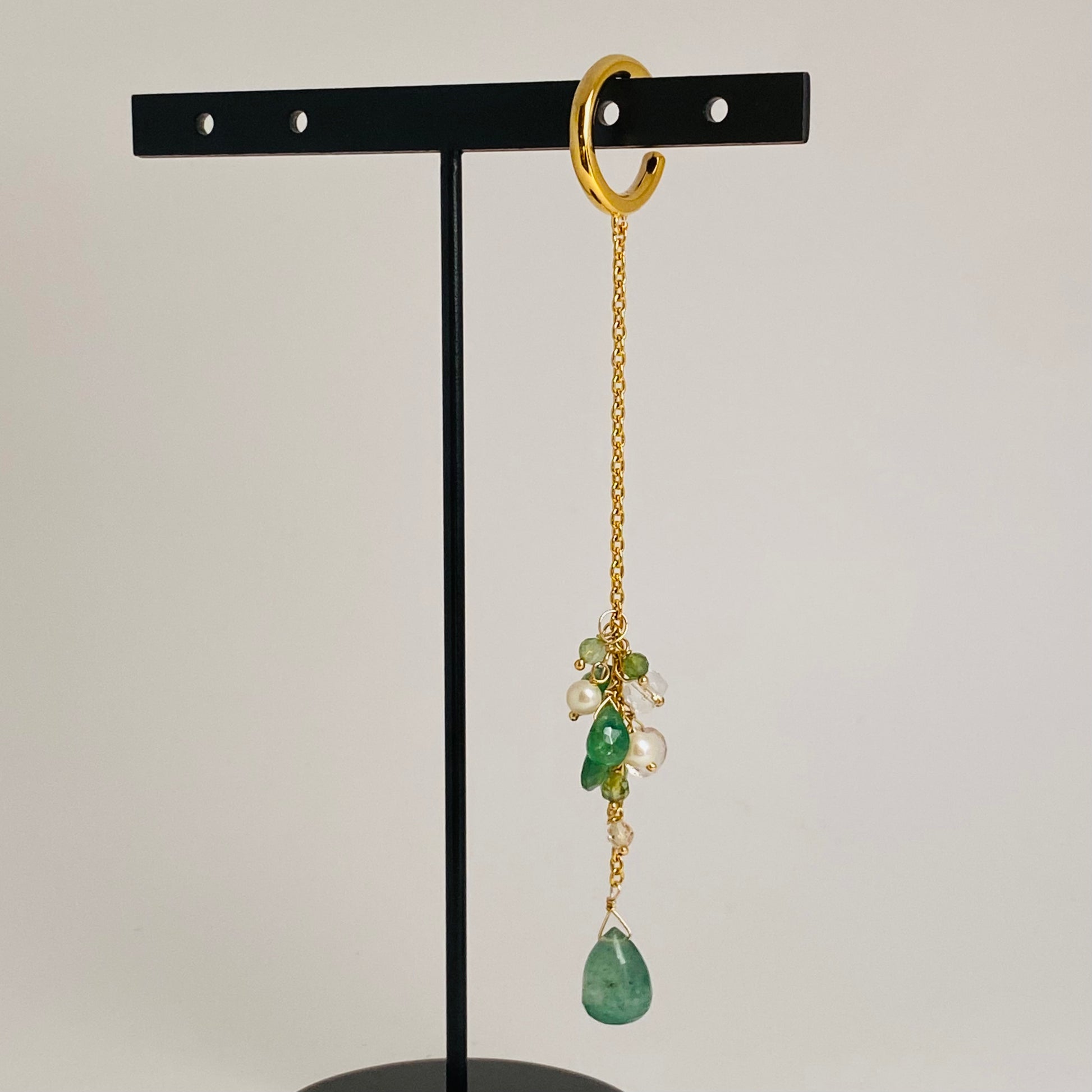 SV925のロングチェーン付きのカフにグリーンガーネットやアベンチュリンなど、瑞々しいグリーンの天然石をミックスした3WAY仕様のイヤーカフです。